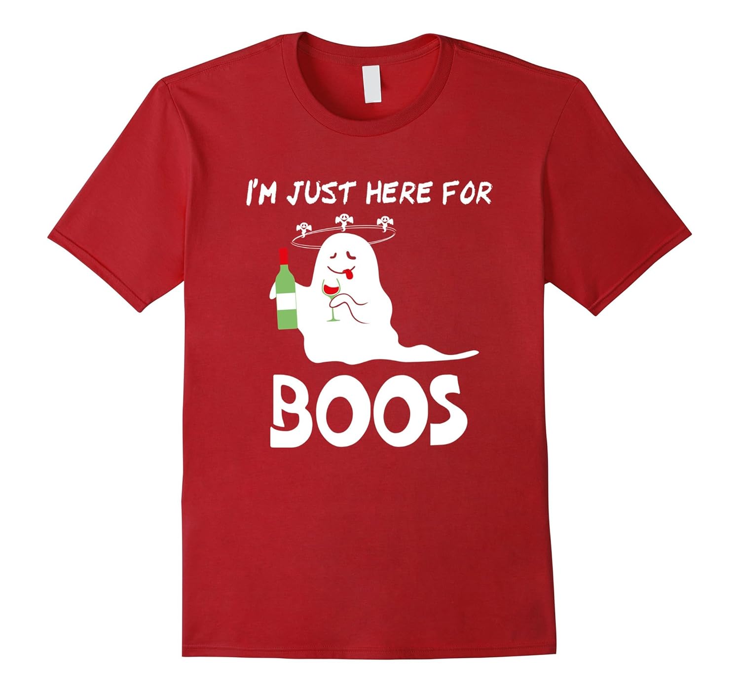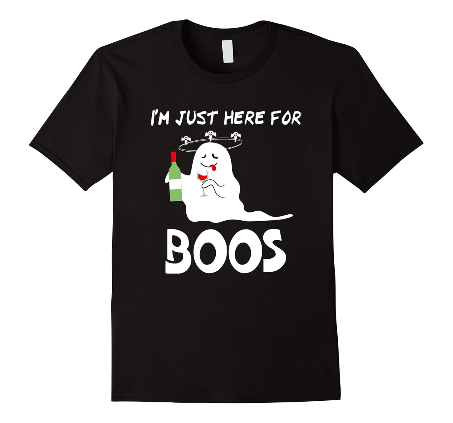 Solid colors: 100% Cotton; Heather Grey: 90% Cotton, 10% Polyester; All Other Heathers: 50% Cotton, 50% Polyester; Imported; Machine wash cold with like colors, dry low heat; Im Just Here For Boos Funny Halloween Wine Shirt for Adults, the funny cute scary halloween wine shirt party; Im Just Here For Boos Funny Halloween Wine Shirt for Adults is a novelty funny halloween shirt and great for wine lovers, beer lovers; Lightweight, Classic fit, Double-needle sleeve and bottom hem
