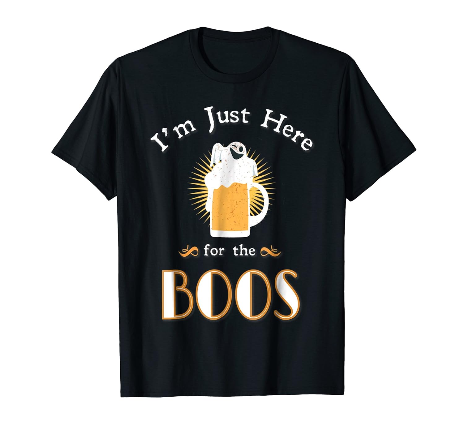 Solid colors: 100% Cotton; Heather Grey: 90% Cotton, 10% Polyester; All Other Heathers: 50% Cotton, 50% Polyester; Imported; Machine wash cold with like colors, dry low heat; This Im Just Here for the Boos funny adult alcohol ghost and beer mug tee shirt is a sure-fire party favorite Andamp; conversation starter.; This Im Just Here for the Boos Funny Halloween Wine, Beer Shirt for Adults is perfect for your next Halloween party!; Lightweight, Classic fit, Double-needle sleeve and bottom hem