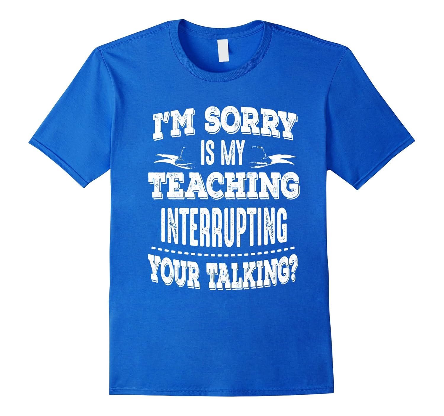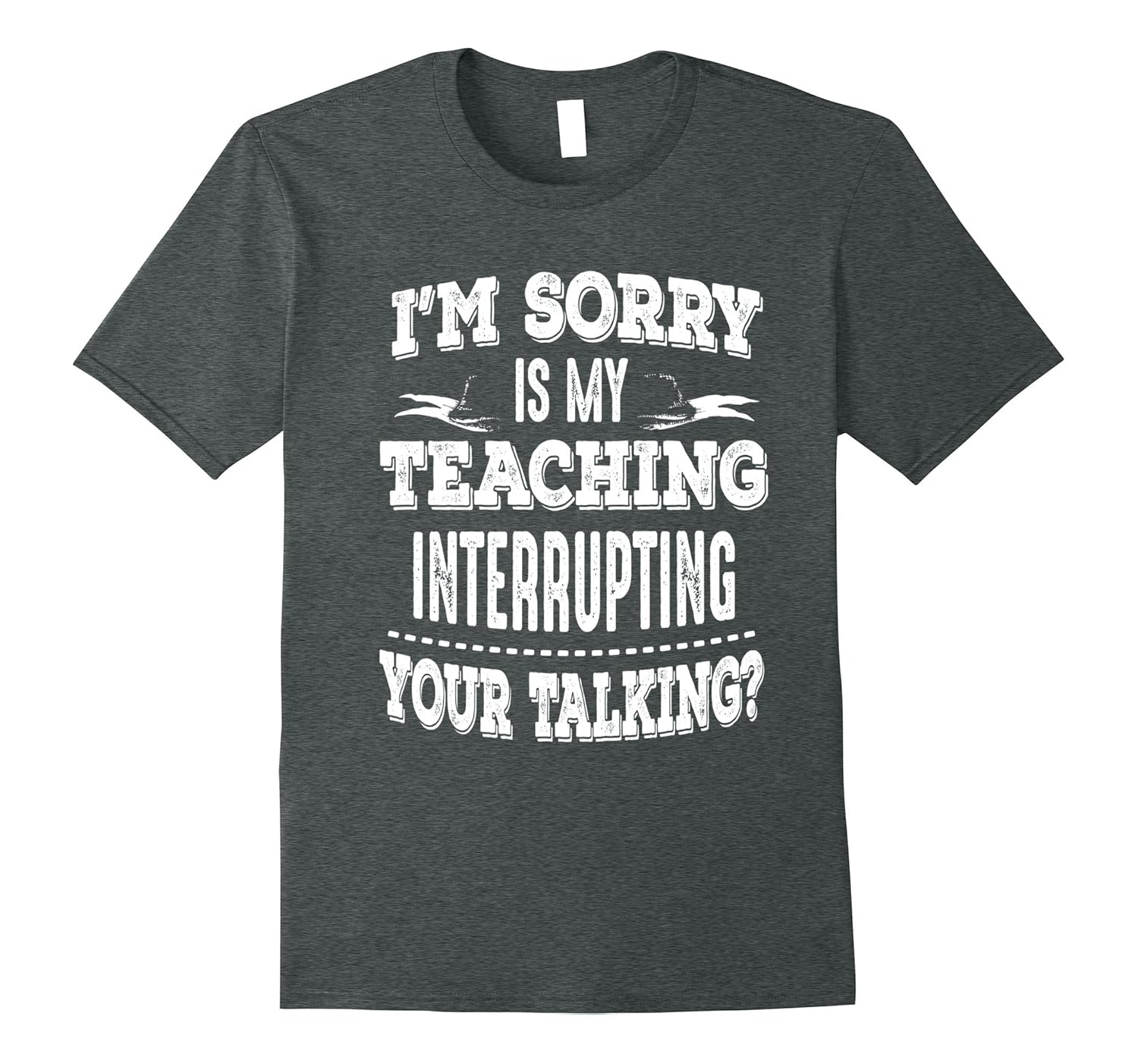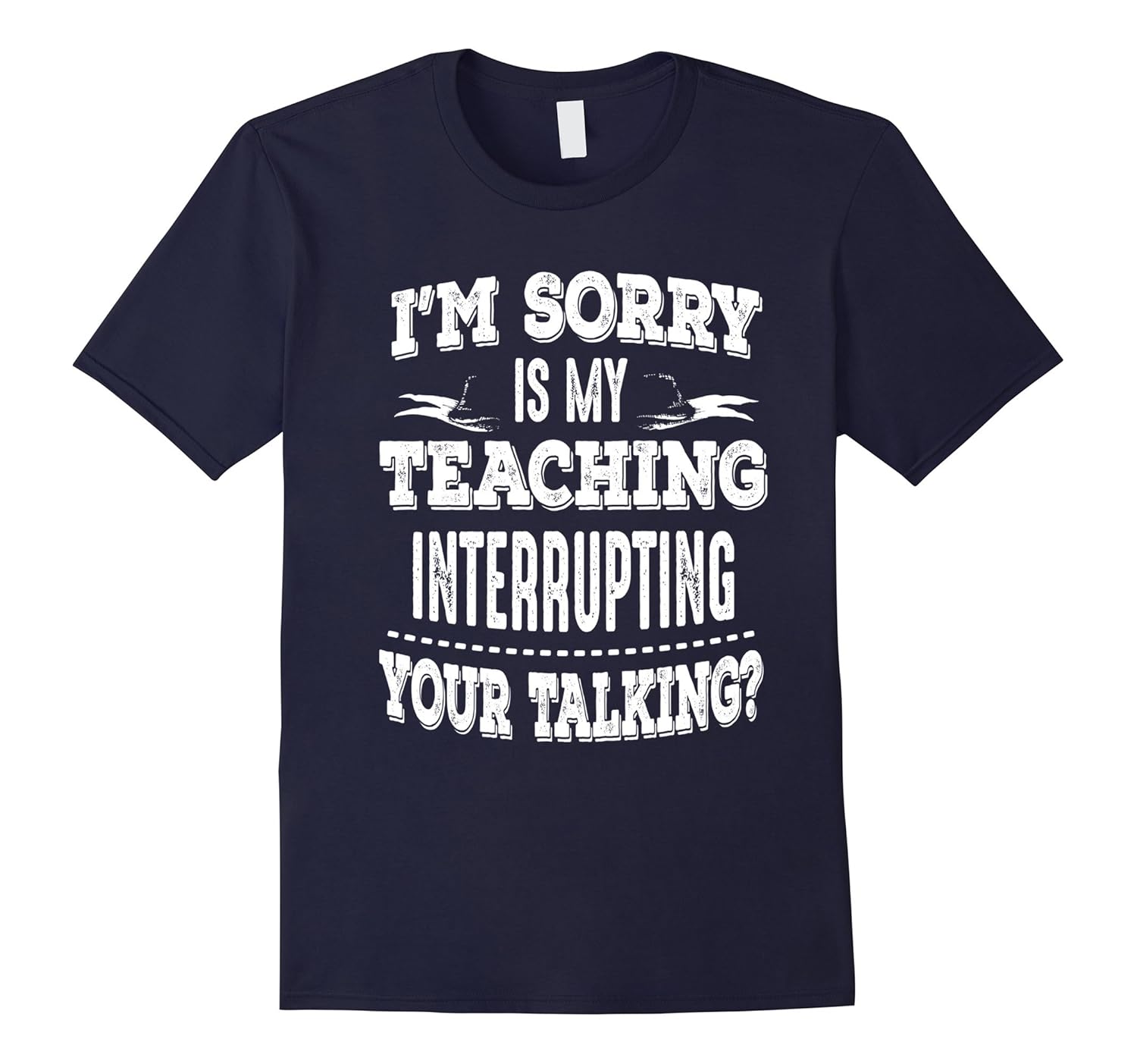 Solid colors: 100% Cotton; Heather Grey: 90% Cotton, 10% Polyester; All Other Heathers: 65% Cotton, 35% Polyester; Imported; Machine wash cold with like colors, dry low heat; Im Sorry Is My Teaching Interrupting your Talking TShirt Funny Teachers Saying Tee is perfect for any frustrated teacher that is trying teach and students are just talking…this updated how you feel status will make everyone laugh…Teachers appreciati; Lightweight, Classic fit, Double-needle sleeve and bottom hem