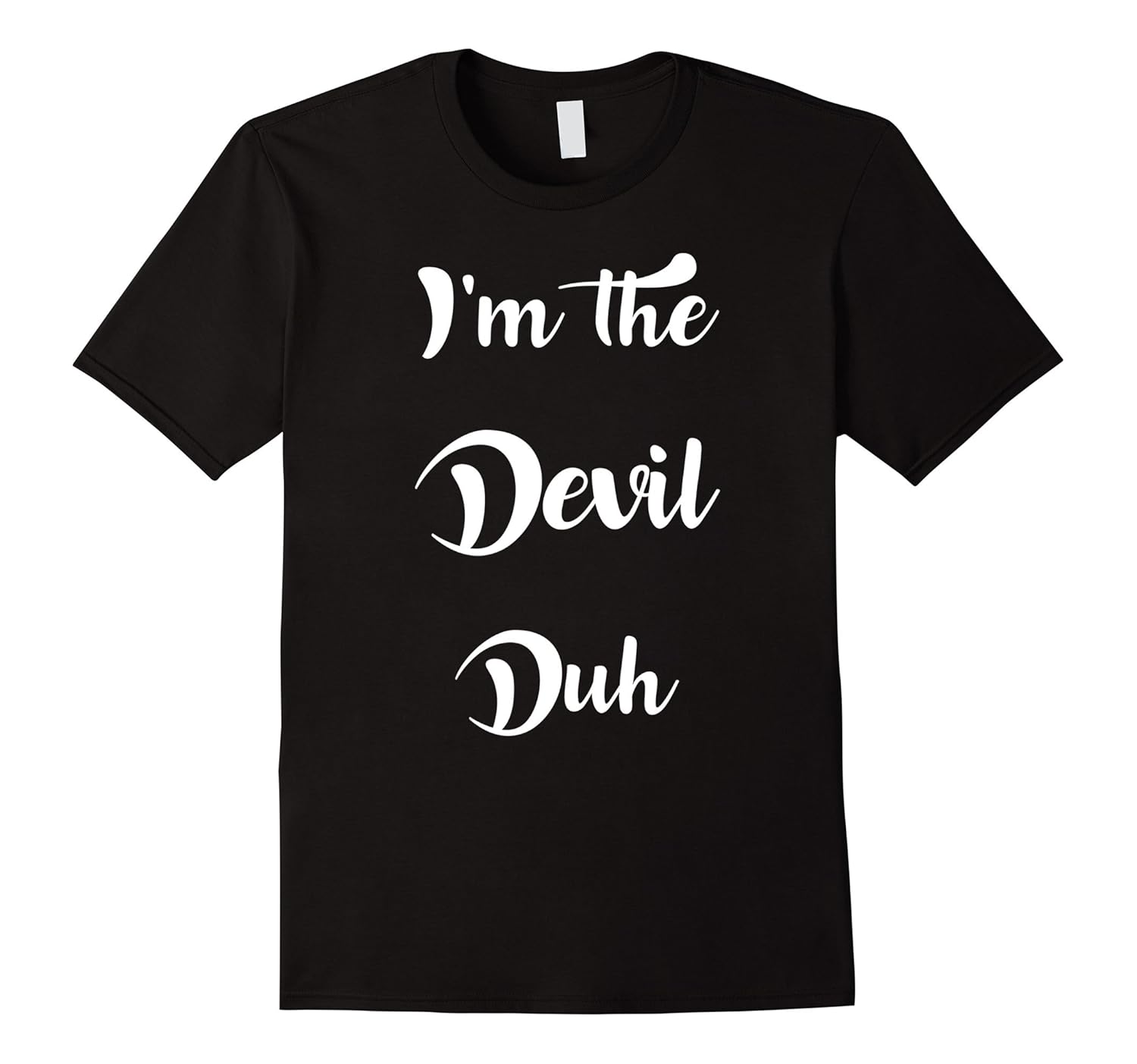 Solid colors: 100% Cotton; Heather Grey: 90% Cotton, 10% Polyester; All Other Heathers: 65% Cotton, 35% Polyester, Imported, Machine wash cold with like colors, dry low heat, Great Christmas easy costume t shirt idea to combine with cool and cute devil costume set with Devil horns, tail and bow tie. Wear this tshirt to a party or family dinner. Perfect easy Halloween and Christmas present idea for a friend, mom and dad. Im The Devil Duh is a funny Christmas outfit or costume for couples and the whole family. Great gift idea for your kids, wife and husband. Dress up with your girlfriend or boyfriend with matching tshirts for the Holidays. Perfect gift for boys and girls, Lightweight, Classic fit, Double-needle sleeve and bottom hem