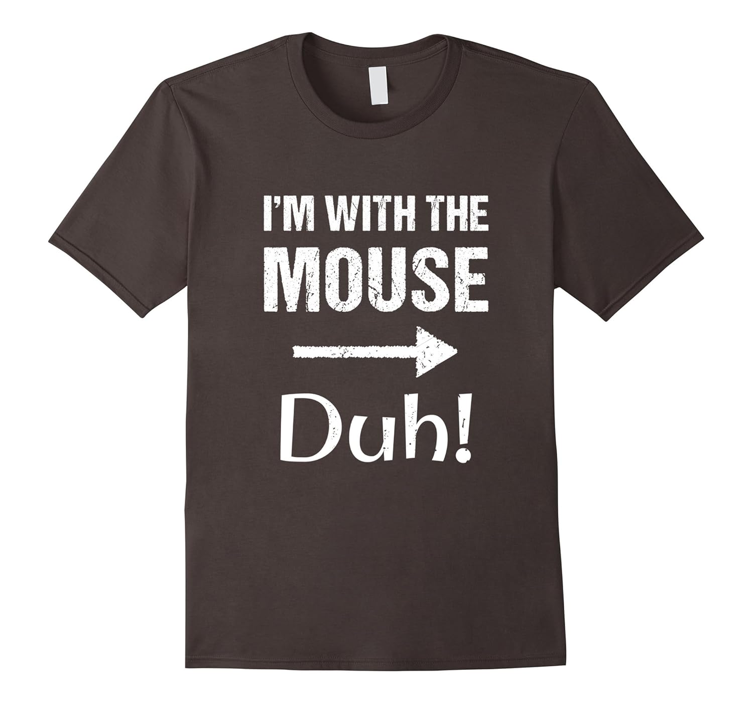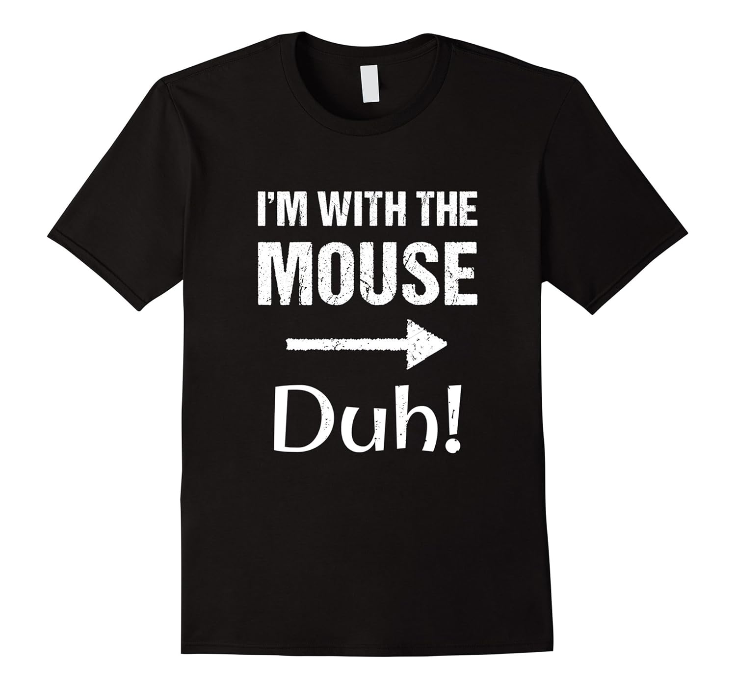 Solid colors: 100% Cotton; Heather Grey: 90% Cotton, 10% Polyester; All Other Heathers: 65% Cotton, 35% Polyester, Imported, Machine wash cold with like colors, dry low heat, I”m With The Mouse Duh Halloween T-Shirt, If you”re with a person who says “I”m A Mouse Duh!”, then this shirt makes for an easy part of your DIY Halloween Costume, Lightweight, Classic fit, Double-needle sleeve and bottom hem