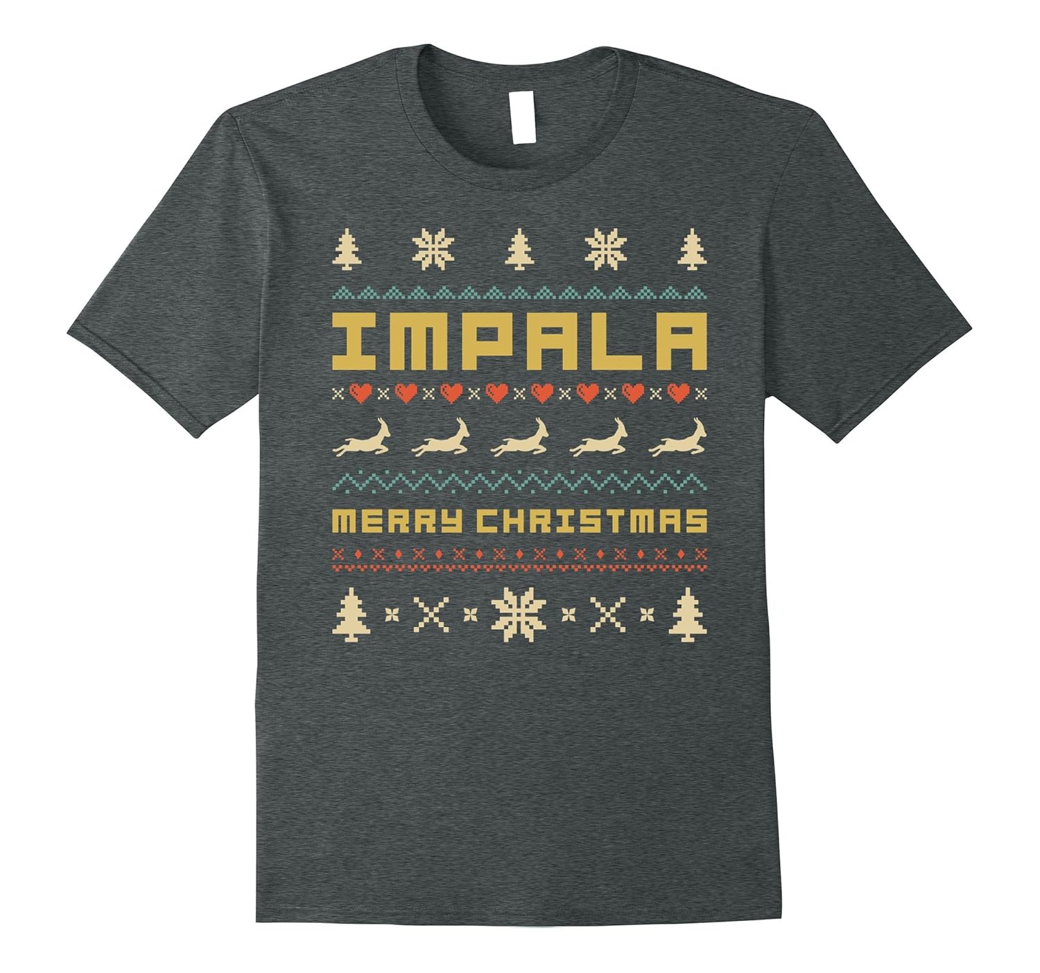 Solid colors: 100% Cotton; Heather Grey: 90% Cotton, 10% Polyester; All Other Heathers: 65% Cotton, 35% Polyester, Imported, Machine wash cold with like colors, dry low heat, Best Ugly Sweater T-Shirt Gift For Christmas, IMPALA Lovers, Dad, Mom, Daddy, Mother, Grandpa, IMPALA Christmas T-shirts, IMPALA Vintage Retro T-Shirt, IMPALA Sweater T-Shirt, Retro Ladies T-Shirt, Sweater Vintage, Sweater Retro, Best Retro T Shirts, IMPALA Dad, IMPALA Mom. Lightweight, Classic fit, Double-needle sleeve and bottom hem