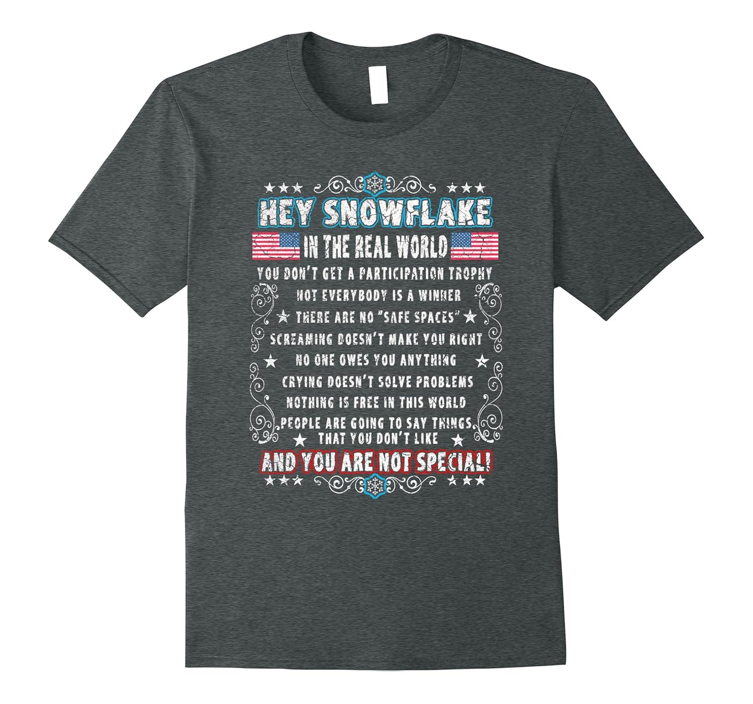 Solid colors: 100% Cotton; Heather Grey: 90% Cotton, 10% Polyester; All Other Heathers: 65% Cotton, 35% Polyester, Imported, Machine wash cold with like colors, dry low heat, Hey Snowflake In The Real World That You Don”t Like And You Are Not Speciali T-shirt, Lightweight, Classic fit, Double-needle sleeve and bottom hem