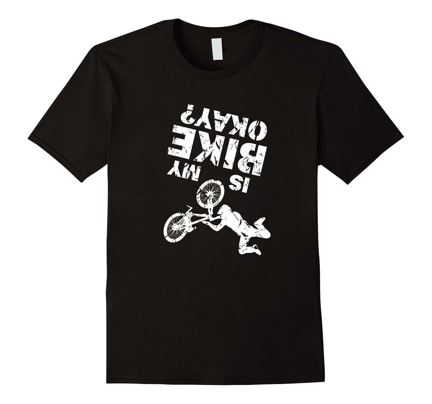 Solid colors: 100% Cotton; Heather Grey: 90% Cotton, 10% Polyester; All Other Heathers: 65% Cotton, 35% Polyester, Imported, Machine wash cold with like colors, dry low heat, This funny Is My Bike Okay. upside down T-Shirt is perfect for a cyclist who loves riding the trail, the road, or just being outdoors. If you are a rider who has ever had a crash on a mountain, BMX, or dirt bike this is the shirt for you OK. This tee makes a great gift for the biker who loves speed and is known to wreck. Ride bicycles fast. Do jumps and stunts. It”s OK to endo if your bike is okay and you can cycle away. Lightweight, Classic fit, Double-needle sleeve and bottom hem