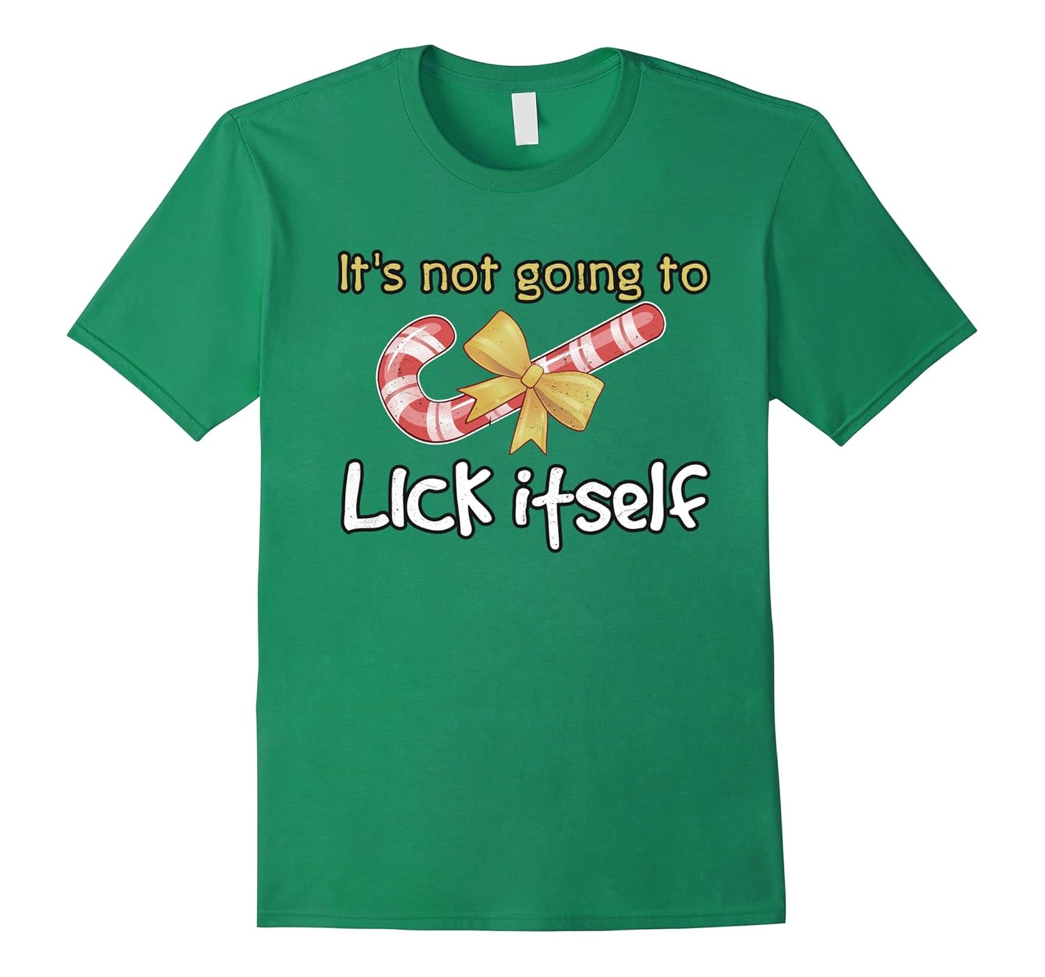 Solid colors: 100% Cotton; Heather Grey: 90% Cotton, 10% Polyester; All Other Heathers: 65% Cotton, 35% Polyester; Imported; Machine wash cold with like colors, dry low heat; Turn Christmas into XXXmas with this tee! Its Not Going To Lick Itself Funny Candy Cane Xmas T-Shirt by BN Naughty Xmas Apparel is a delightfully funny tee for those with a mind that is a bit dirty!; Art features a cane of candy with a bow on it, letting the reader know that it wont be licking itself! Perfect gift for the holidays for a single friend or friends that just love to talk naughty instead of nice!; Lightweight, Classic fit, Double-needle sleeve and bottom hem