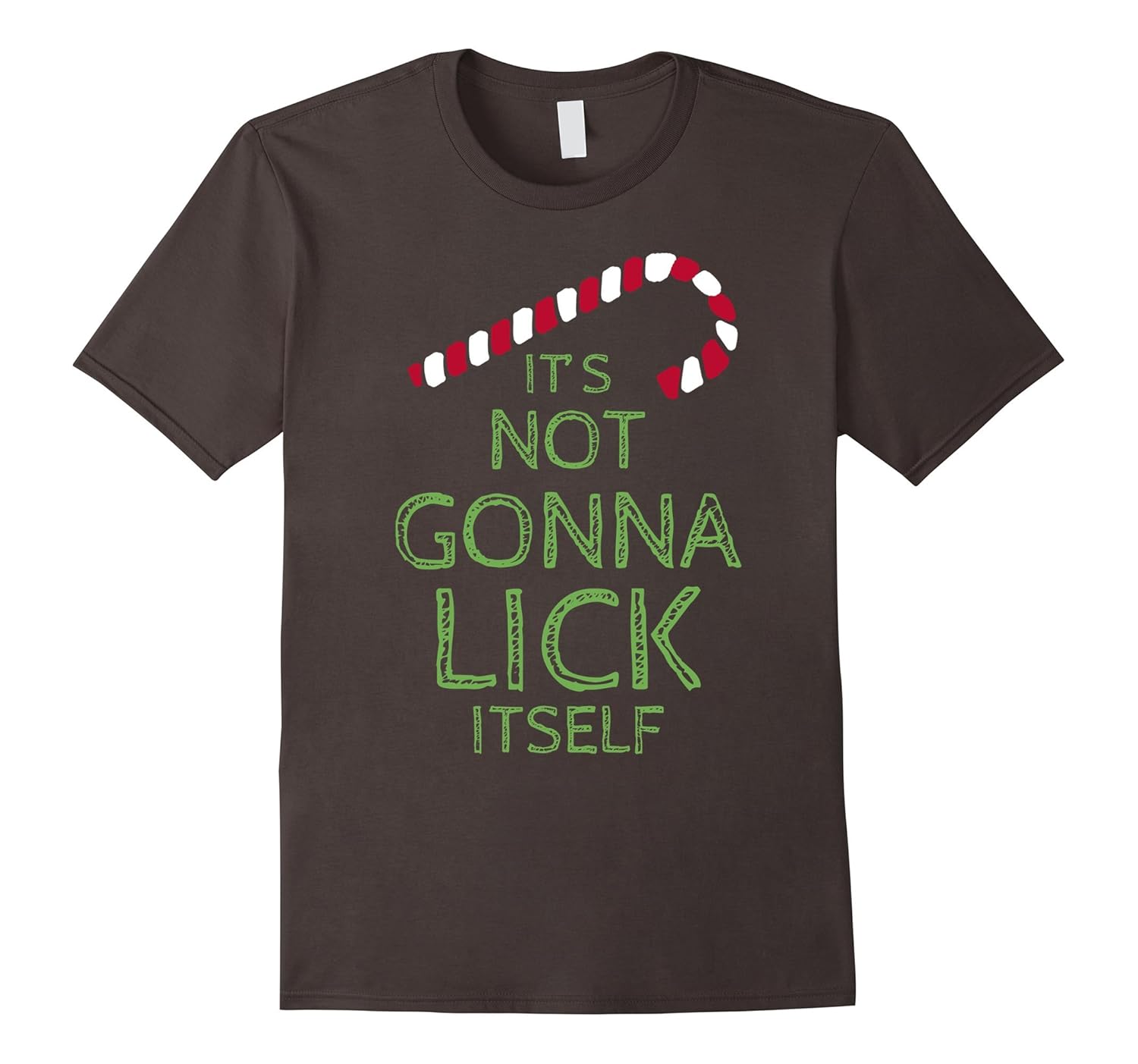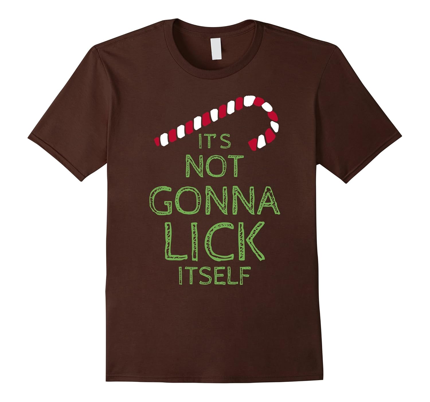 Solid colors: 100% Cotton; Heather Grey: 90% Cotton, 10% Polyester; All Other Heathers: 65% Cotton, 35% Polyester; Imported; Machine wash cold with like colors, dry low heat; Have some fun this Christmas with the Its Not Gonna Lick Itself Shirt.; This candy cone joke is a great gift or present idea for the holidays. Anyone with a dirty humor will like the Its Not Going To Lick Itself slogan.; Lightweight, Classic fit, Double-needle sleeve and bottom hem