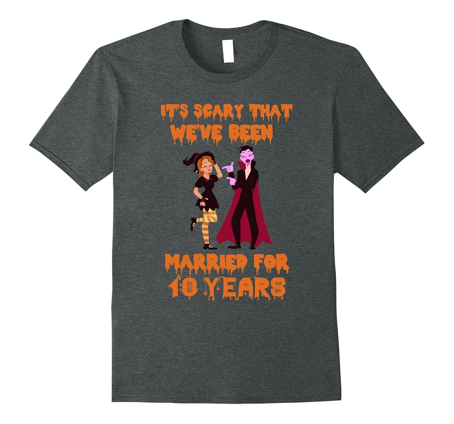 Solid colors: 100% Cotton; Heather Grey: 90% Cotton, 10% Polyester; All Other Heathers: 65% Cotton, 35% Polyester, Imported, Machine wash cold with like colors, dry low heat, Happy Halloween thanksgiving and wedding anniversary, 10 year and i haven”t kill him yet, 10 year still married to my best friend, 10 year down forever to go, we still do since 2007, after 10 years he still puts up with me, Funny Halloween, best wife since 2007, best husband since 2007, the 10st wedding anniversary gift is cotton, this is my gift, just married 10 year ago, halloween costumes for women, halloween decorations, this is my human costume, decorate for October, dabbing skeleton, Lightweight, Classic fit, Double-needle sleeve and bottom hem
