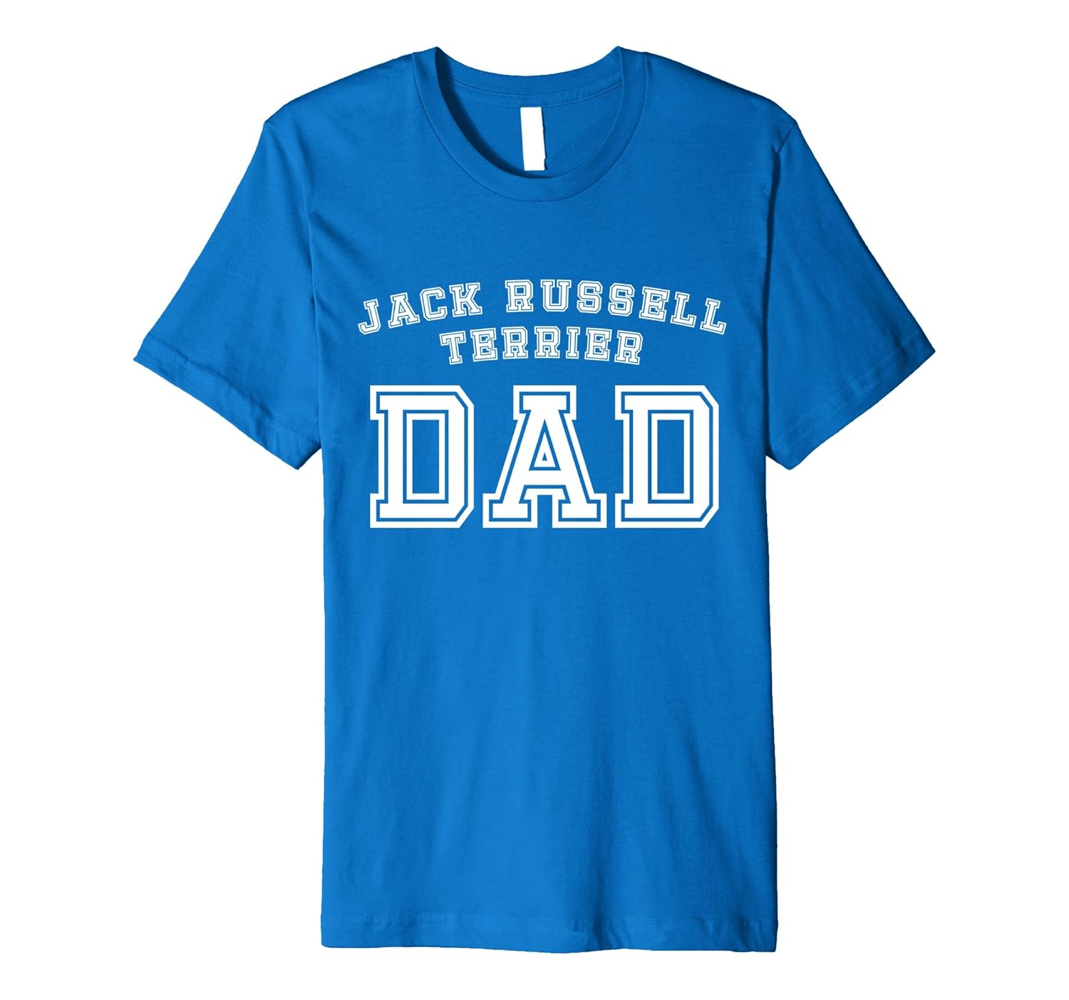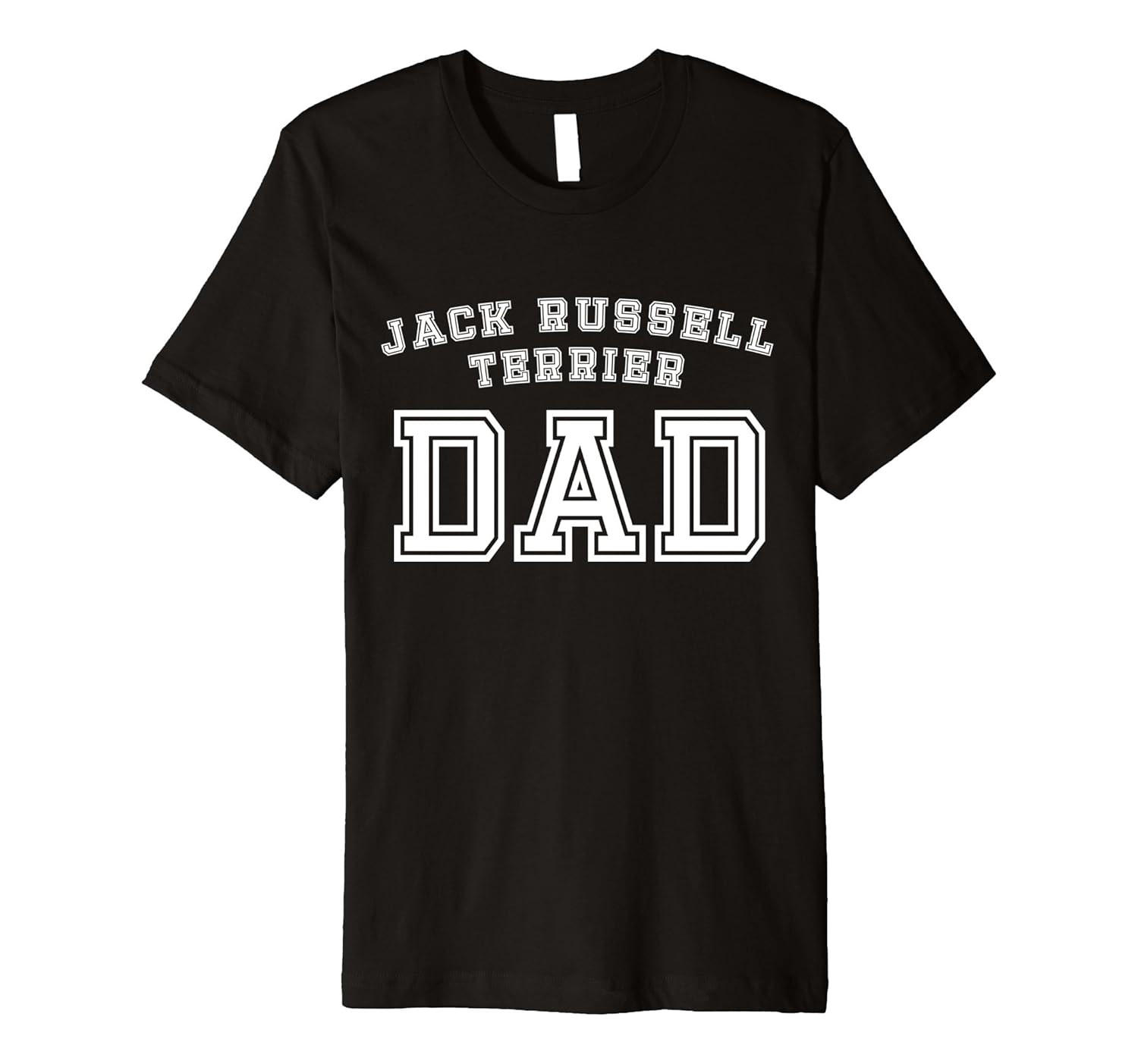 Solid colors: 100% Cotton; Heather Grey: 90% Cotton, 10% Polyester; All Other Heathers: 58% Cotton, 42% Polyester; Imported; Machine wash cold with like colors, dry low heat; Cute shirt for any dedicated dog parent. Buy as a gift for fathers day, Christmas, or a birthday. Get one for your husband, brother, uncle, father, grandpa, or yourself.; Fit: Slim (consider ordering a larger size for a looser fit); White letters on a colored t shirt with Jack Russell Terrier Dad in a sports jersey style writing.; This premium t-shirt is made of lightweight fine jersey fabric