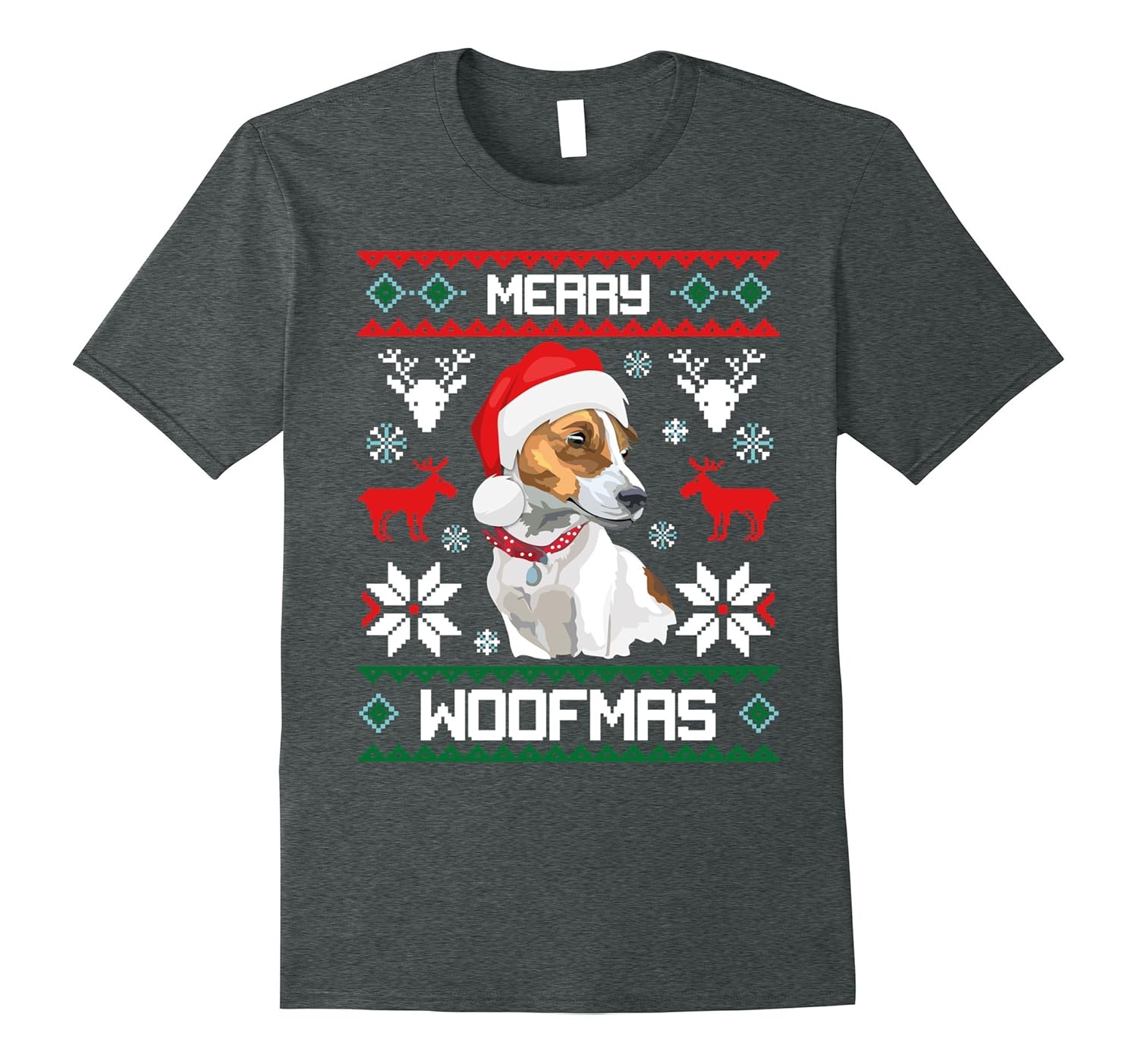 Jack Russell Terrier Dog Merry Woofmas Christmas T-Shirt-ANZ