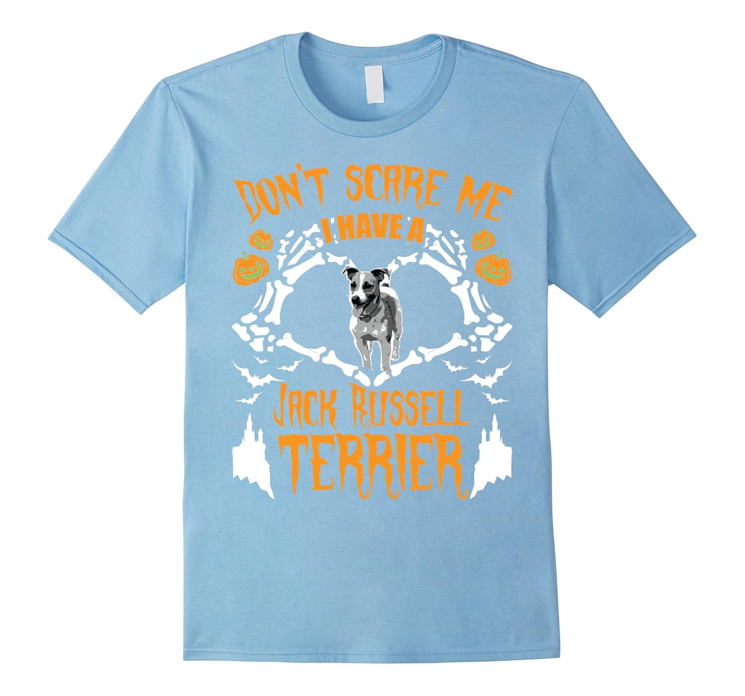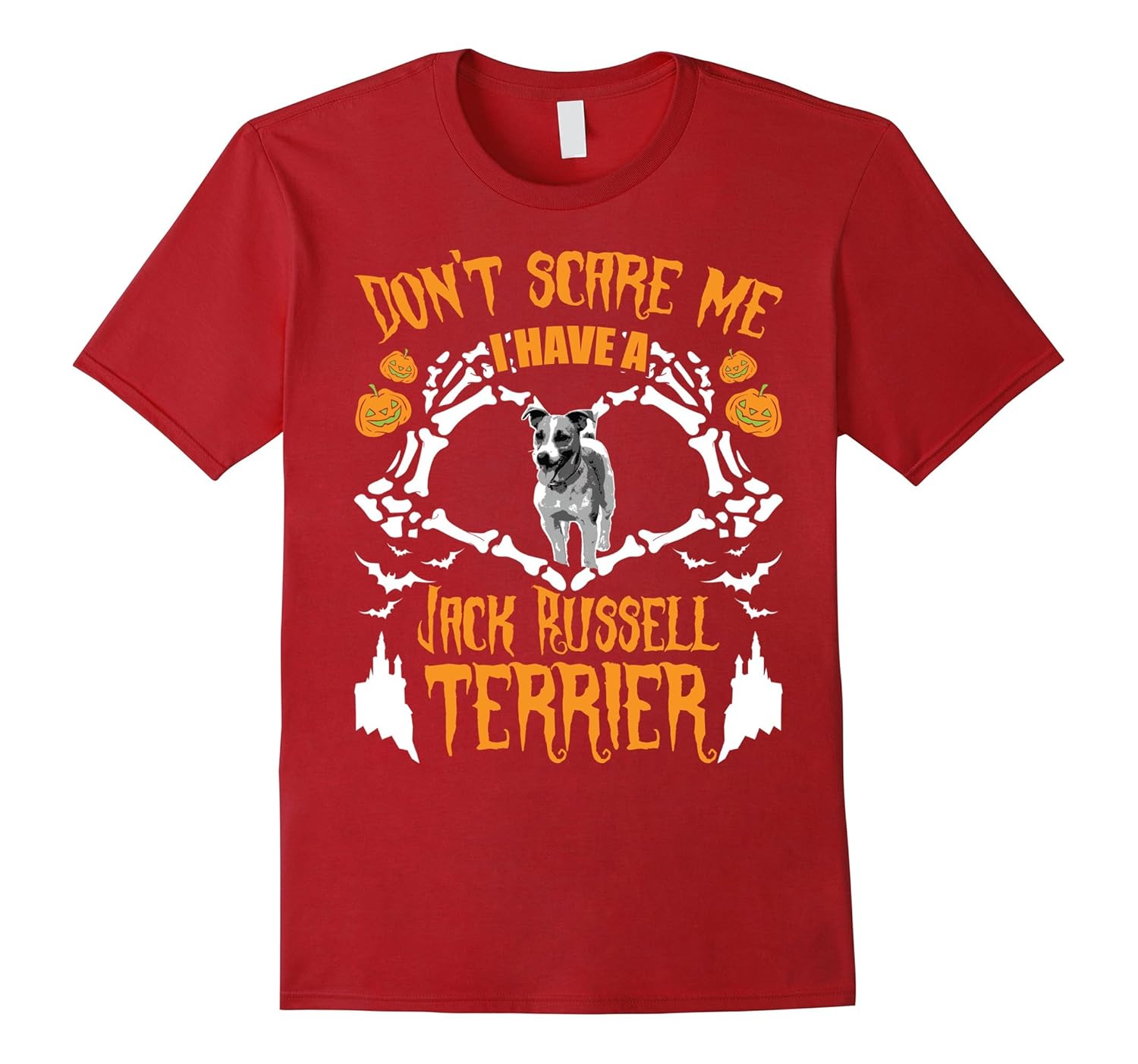 Solid colors: 100% Cotton; Heather Grey: 90% Cotton, 10% Polyester; All Other Heathers: 65% Cotton, 35% Polyester; Imported; Machine wash cold with like colors, dry low heat; As a proud and pet loving Jack Russell owner you need to celebrate Halloween in this funny Dont Scare Me I Have a Jack Russell Terrier Skeleton Hand Heart Shirt. Because Jack Russell Terriers are true friends to any dog mom, dog dad, grandma or grandpa.; Jack Russell Terrier Halloween Dog T-Shirt is a great Thanksgiving, Birthday or Christmas gift for dog and puppies loving women, men, boys, girls, kids, partners or friends. Wear it on Halloween Party, National Dog Day or International Homeless Animals Day; Lightweight, Classic fit, Double-needle sleeve and bottom hem