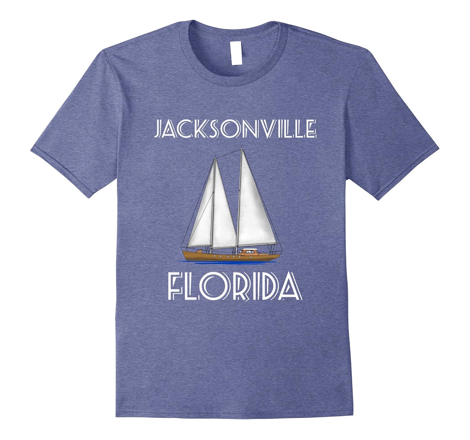 Solid colors: 100% Cotton; Heather Grey: 90% Cotton, 10% Polyester; All Other Heathers: 65% Cotton, 35% Polyester, Imported, Machine wash cold with like colors, dry low heat, Nautical graphic art of a classic sailboat sailing for Jacksonville, Florida. A perfect gift idea for sailors or if you are a sailing enthusiasts. Do you love to sail. Own a sailboat. The perfect sailing t-shirt for any Captain. Sailboat art for any sailor out there. Show your love of sailing the open water of Florida with this sailboat t-shirt. Jacksonville, Florida is a popular sailing destination and marina with a large active sailing community. Lightweight, Classic fit, Double-needle sleeve and bottom hem