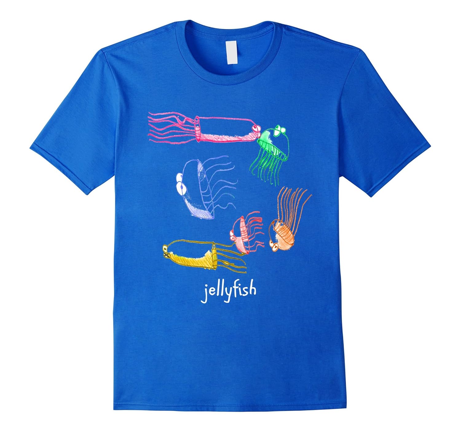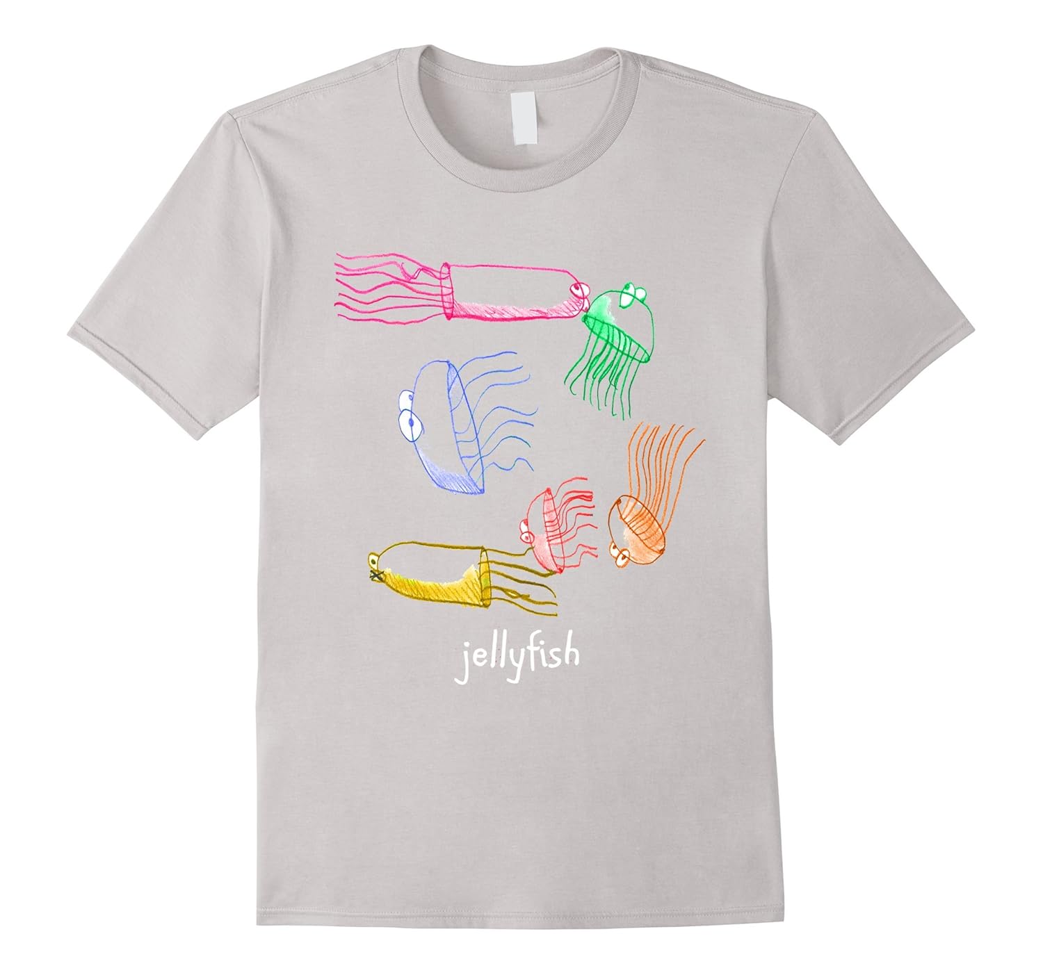 Solid colors: 100% Cotton; Heather Grey: 90% Cotton, 10% Polyester; All Other Heathers: 65% Cotton, 35% Polyester, Imported, Machine wash cold with like colors, dry low heat, Hand drawn artwork, Original artwork of jellyfish, Lightweight, Classic fit, Double-needle sleeve and bottom hem