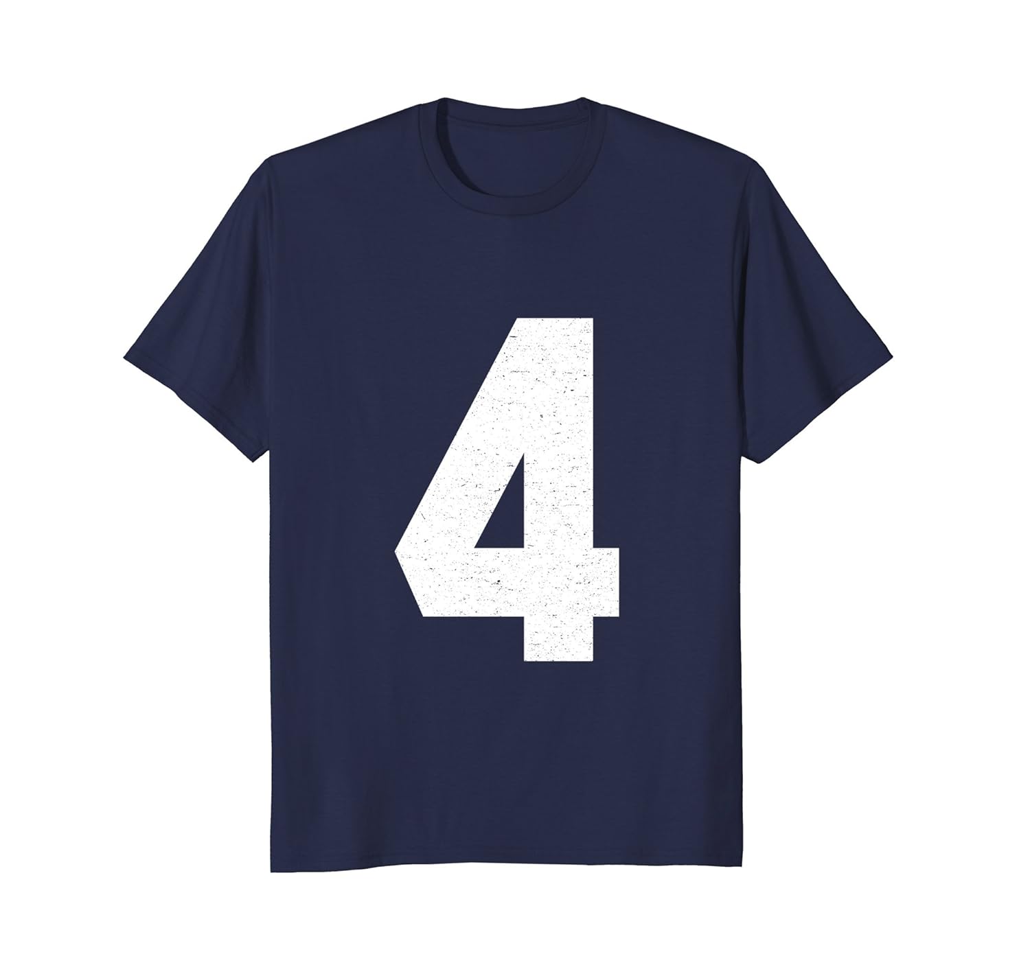 Solid colors: 100% Cotton; Heather Grey: 90% Cotton, 10% Polyester; All Other Heathers: 50% Cotton, 50% Polyester; Imported; Machine wash cold with like colors, dry low heat; A fun and stylish shirt with the number four in big, bold distressed lettering. Great for sporting events, teams, uniforms, or if it is your favorite lucky number. Is it for a birthday or what does it mean?; The perfect gag gift t-shirt for friends and family who enjoy sports like baseball and football. Also great for a birthday. This classic fashion numbered jersey style will always be cool!; Lightweight, Classic fit, Double-needle sleeve and bottom hem