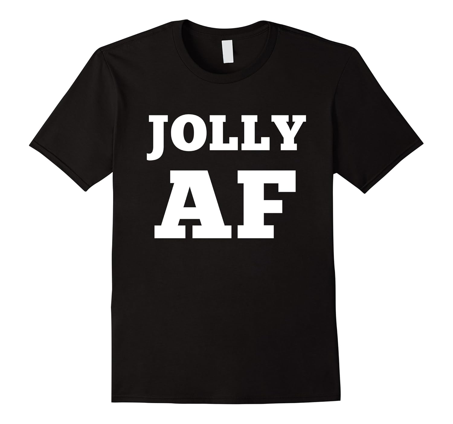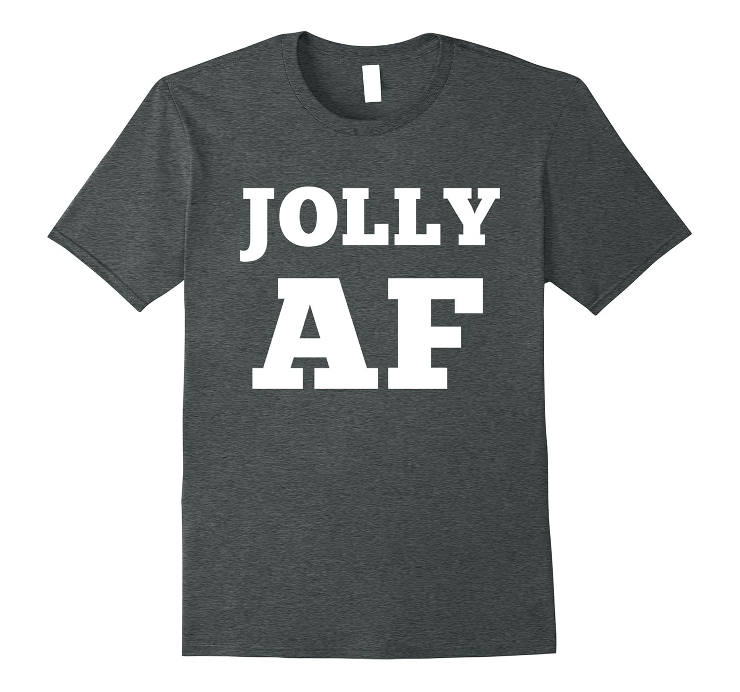 Solid colors: 100% Cotton; Heather Grey: 90% Cotton, 10% Polyester; All Other Heathers: 65% Cotton, 35% Polyester; Imported; Machine wash cold with like colors, dry low heat; Candy canes, Santa, snow, cookies, presents and reindeer! Theres nothing better than the holiday festive season! Show your enthusiasm for the Christmas holidays with this hilarious Jolly AF Xmas tee. Perfect for any Christmas lover!; Jolly AF! Funny Christmas tees dont get much better than this! Enjoy the holidays in style with this funny Christmas tee which will be sure to bring joy to those around you with its fun and playful message. Not even Santa himself could be as jolly!; Lightweight, Classic fit, Double-needle sleeve and bottom hem