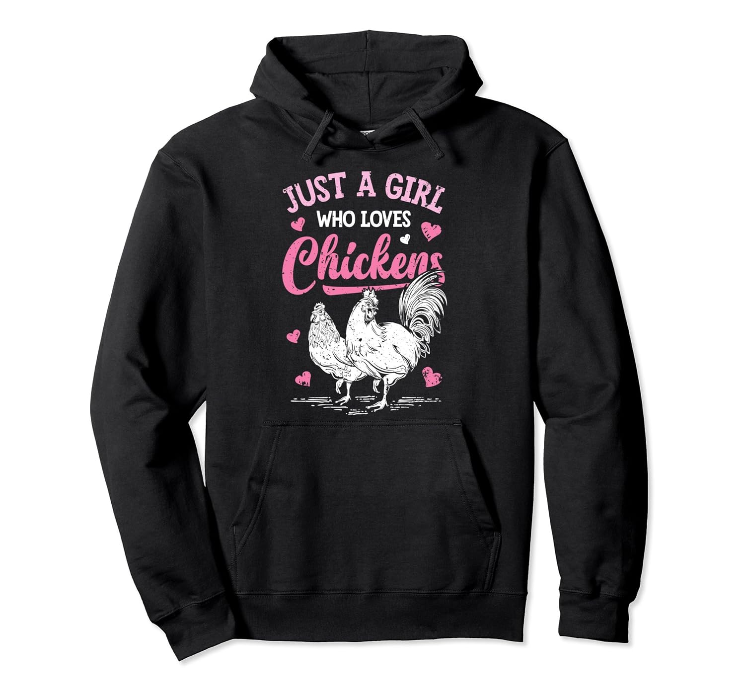 Solid colors: 80% Cotton, 20% Polyester; Heather Grey: 78% Cotton, 22% Poly; Dark Heather: 50% Cotton, 50% Polyester; Imported; Machine wash cold with like colors, dry low heat; Just a Girl Who Loves Chickens Pullover Sweatshirt Hoodie Chicken Gifts for men, women, kids, boys, girls who lives in farm. Unique retro Vintage Gifts for chicken whisperer, crazy chicken lady, farmer, farmers, chicken lovers, chicken mom, Poultry lovers.; Graphic tee outfit, clothes for men, women, kids, boys, girls, teens, youth, dad, father, mom, mother, grandma, granddad, grandmother, grandfather, boyfriend, girlfriend. Great gift for birthday, New Year, Christmas, Thanksgiving, Mothers Day, Fathers Day.; 8.5 oz, Classic fit, Twill-taped neck