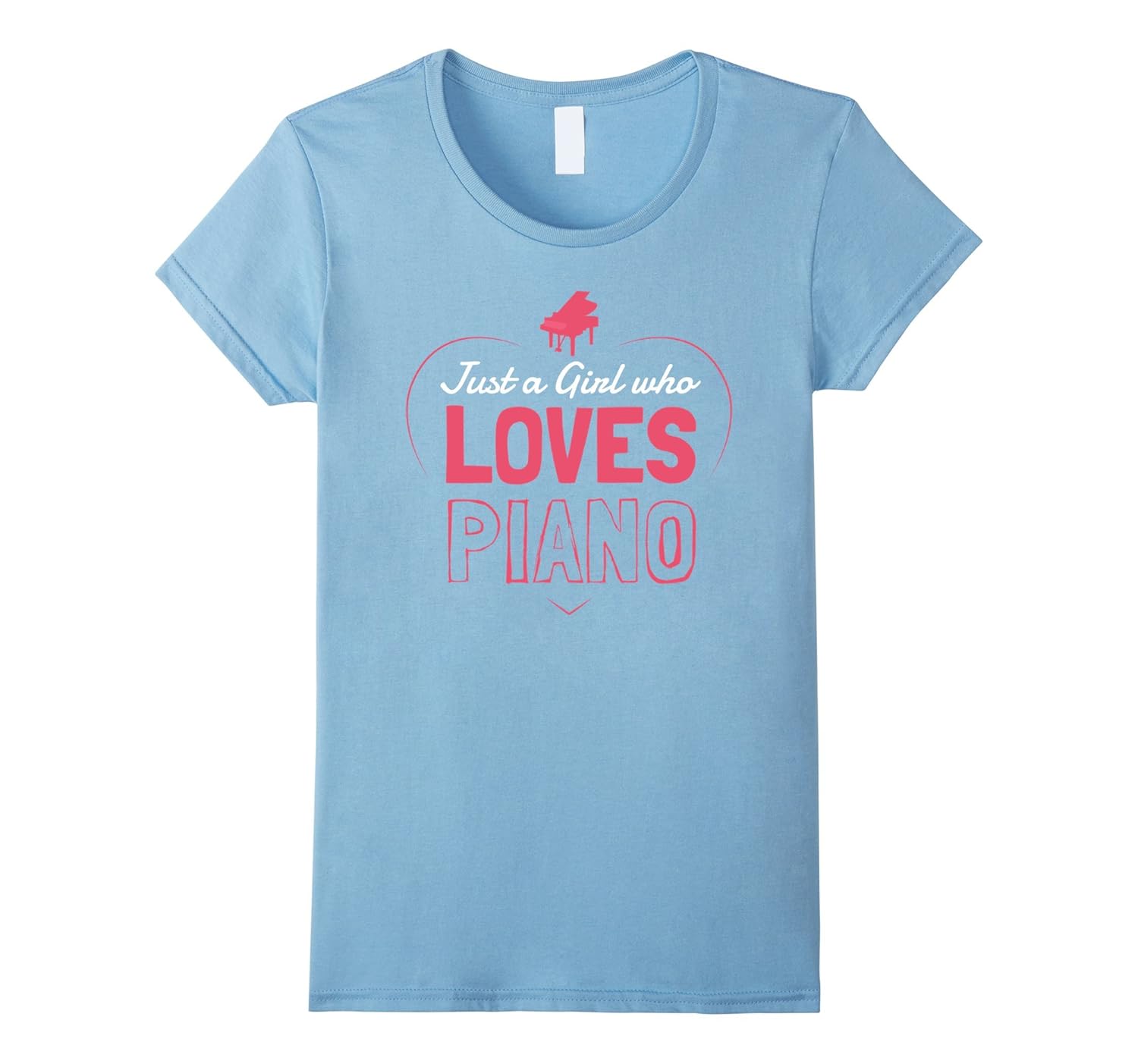 Solid colors: 100% Cotton; Heather Grey: 90% Cotton, 10% Polyester; All Other Heathers: 65% Cotton, 35% Polyester, Imported, Machine wash cold with like colors, dry low heat, Perfect gift idea for girl who loves Piano with pink graphic, Just a girl who loves Piano T-shirt, Piano tshirt women, piano lovers shirts, music t shirt funny for girls. Lightweight, Classic fit, Double-needle sleeve and bottom hem