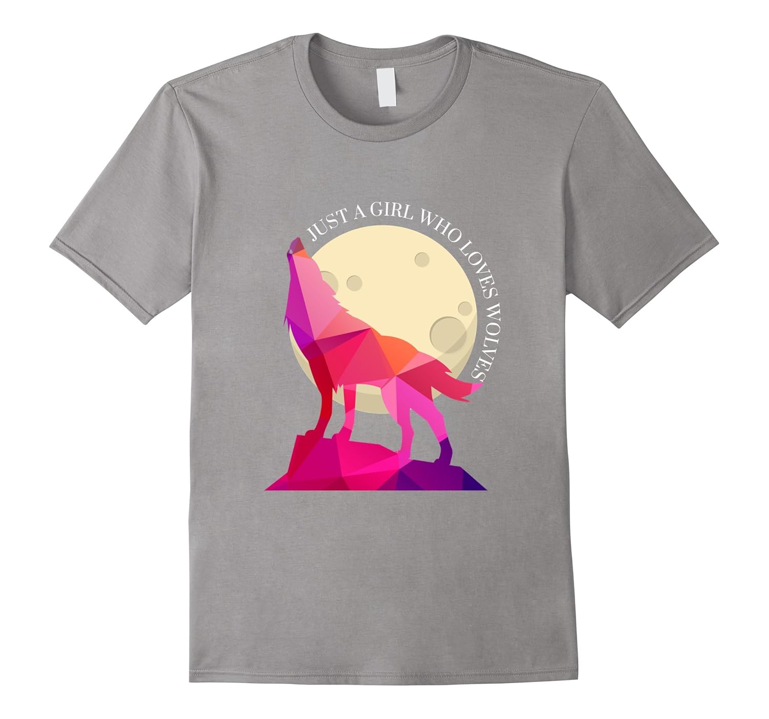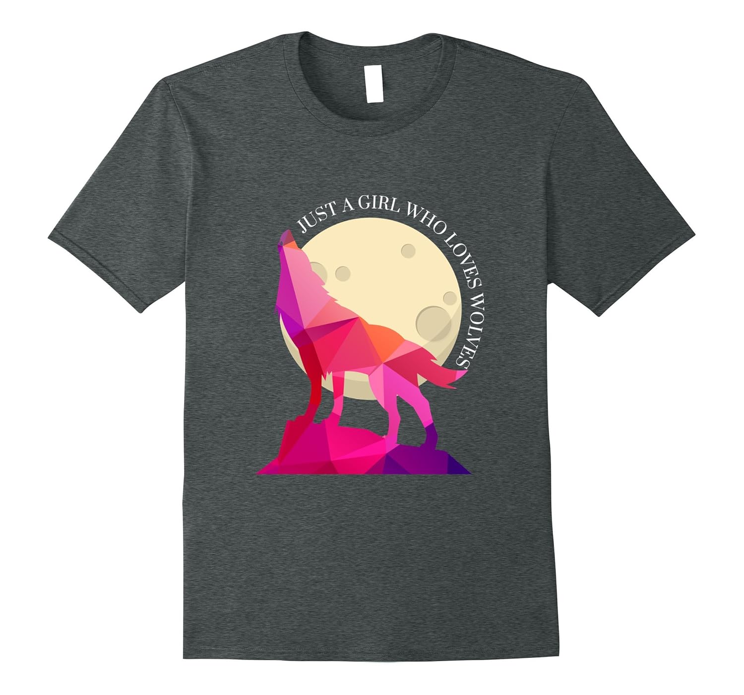 Solid colors: 100% Cotton; Heather Grey: 90% Cotton, 10% Polyester; All Other Heathers: 65% Cotton, 35% Polyester, Imported, Machine wash cold with like colors, dry low heat, This Wolf Lovers T-shirt says “Just a Girl Who Loves Wolves”. A Geometric Wolf Shirt for any girl or woman who loves wolves. If you love wolves Tee, this wolf inspired love design is right for you. Wild animal collection. A cute gift tee shirt for an animal loving friend or family relative for a birthday, Christmas, or other holiday!, Lightweight, Classic fit, Double-needle sleeve and bottom hem