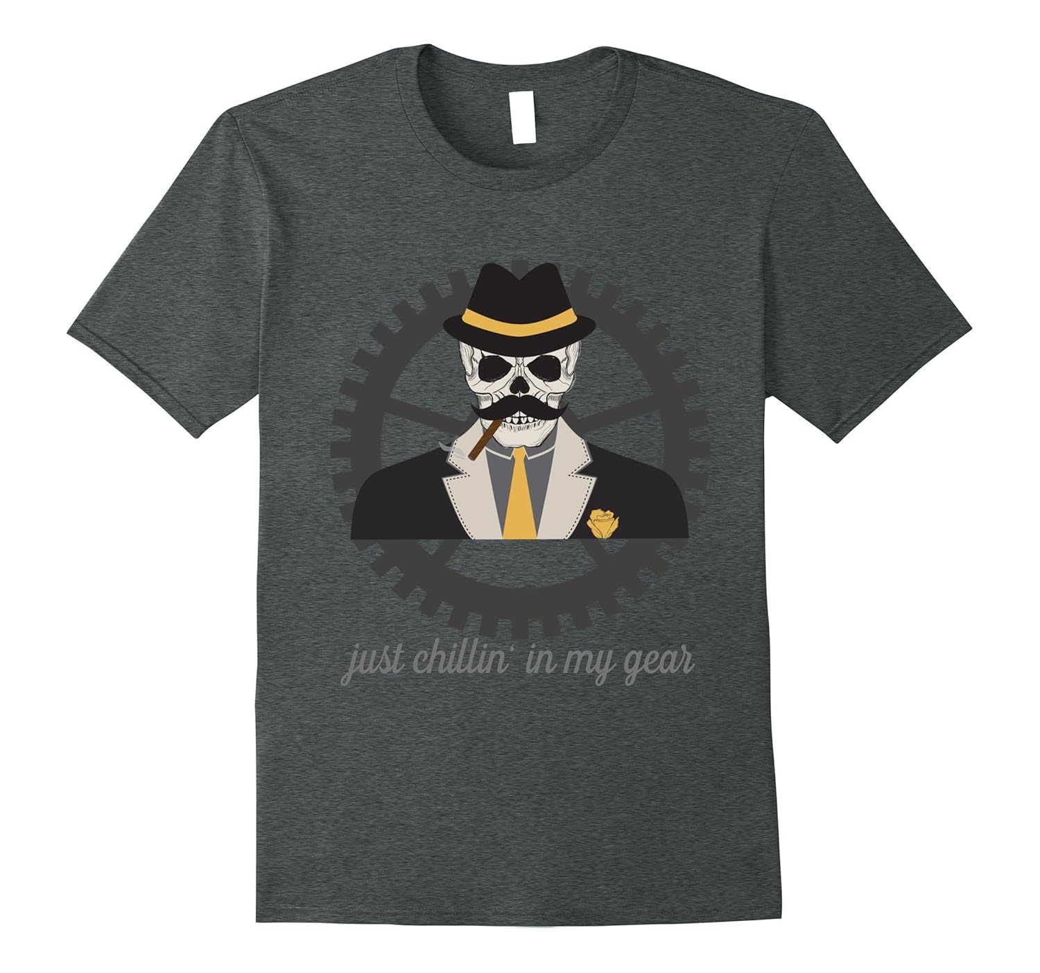 Solid colors: 100% Cotton; Heather Grey: 90% Cotton, 10% Polyester; All Other Heathers: 65% Cotton, 35% Polyester, Imported, Machine wash cold with like colors, dry low heat, Great shirt for relaxing or just chilling anywhere! This Tee shirt is the Perfect gift for anybody that is a mustachioed hipster, loves steampunk, or just enjoys a punny shirt! Who can resist this dapper skeleton in his awesome mustache puffing on a cigar. Does someone you know (maybe you.) always hang out in their “gear”. Know anybody that happens to like bicycle gears or cogs in general. This t-shirt would be the perfect surprise Christmas Gift for them!, Lightweight, Classic fit, Double-needle sleeve and bottom hem