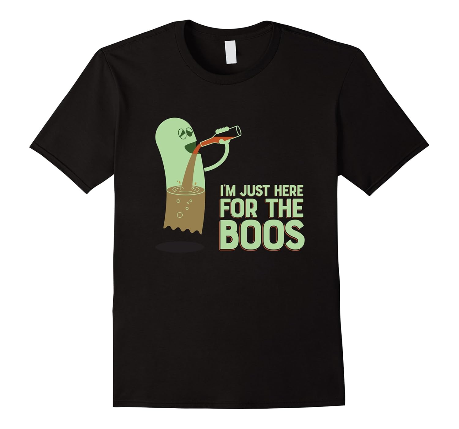 Solid colors: 100% Cotton; Heather Grey: 90% Cotton, 10% Polyester; All Other Heathers: 65% Cotton, 35% Polyester, Imported, Machine wash cold with like colors, dry low heat, Shirt says, “I”M JUST HERE FOR THE BOOS”, This funny ghost Halloween tee is a great gift for trick or treat or beer lovers that enjoy parties, drinking, alcohol, ghosts, fun and humor. Lightweight, Classic fit, Double-needle sleeve and bottom hem
