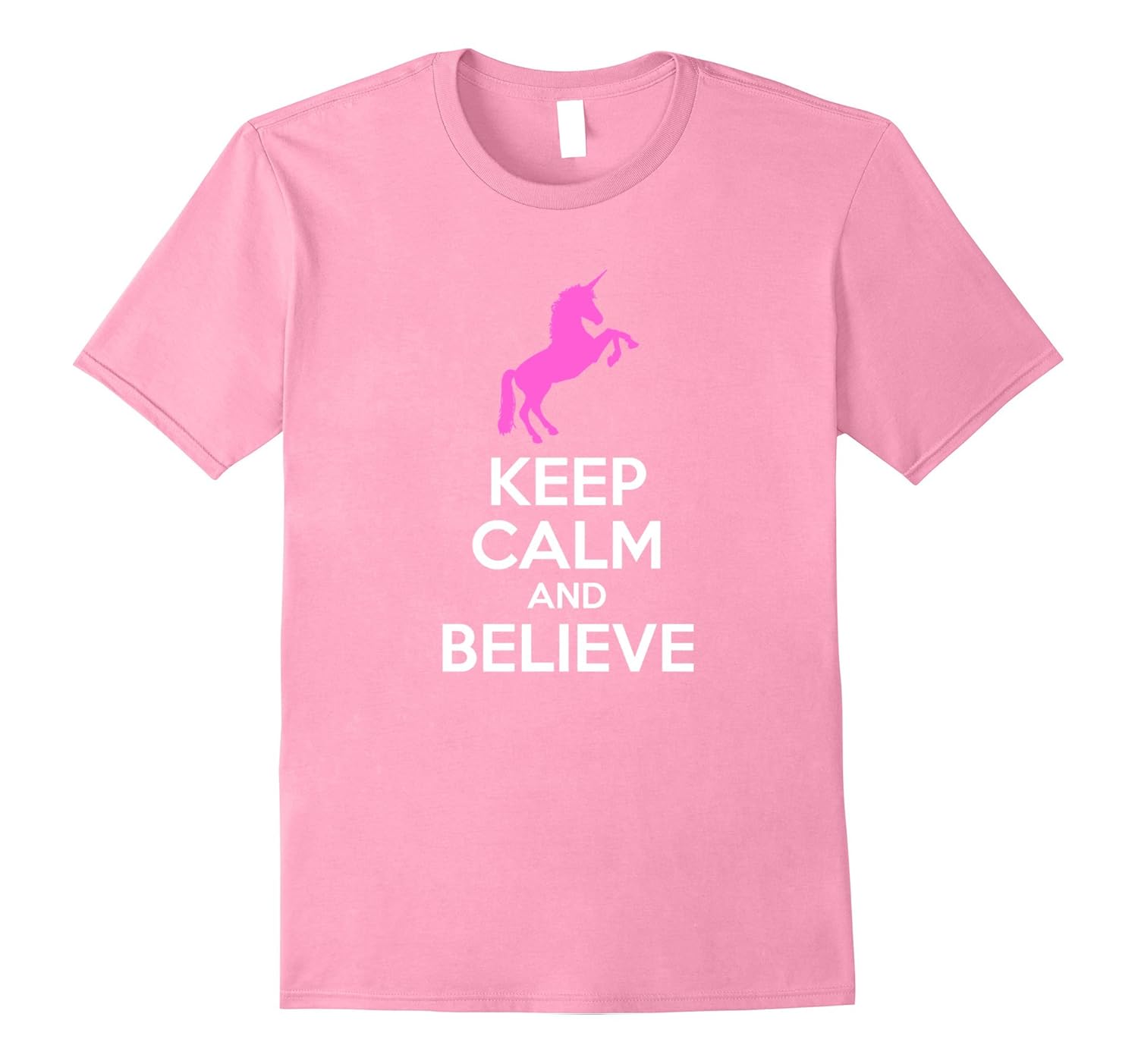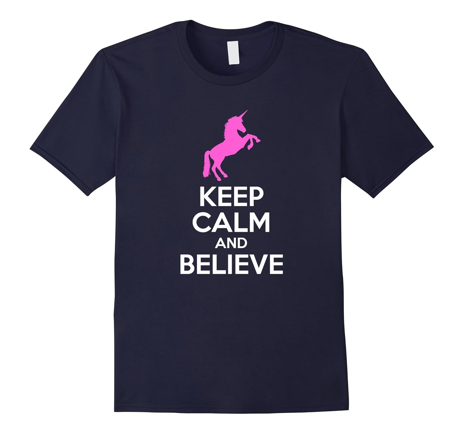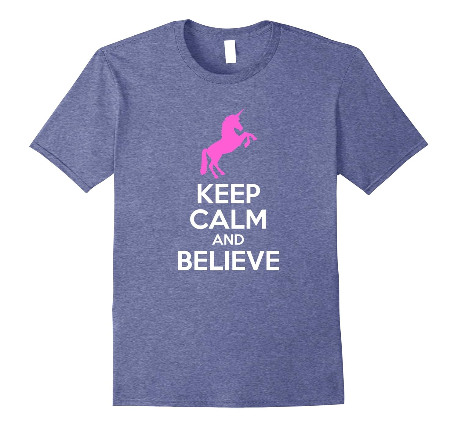 Solid colors: 100% Cotton; Heather Grey: 90% Cotton, 10% Polyester; All Other Heathers: 65% Cotton, 35% Polyester, Imported, Machine wash cold with like colors, dry low heat, Keep Calm and Believe Unicorn Cute Funny T-Shirt makes a great gift for unicorn and; horse lovers. Lightweight, Classic fit, Double-needle sleeve and bottom hem
