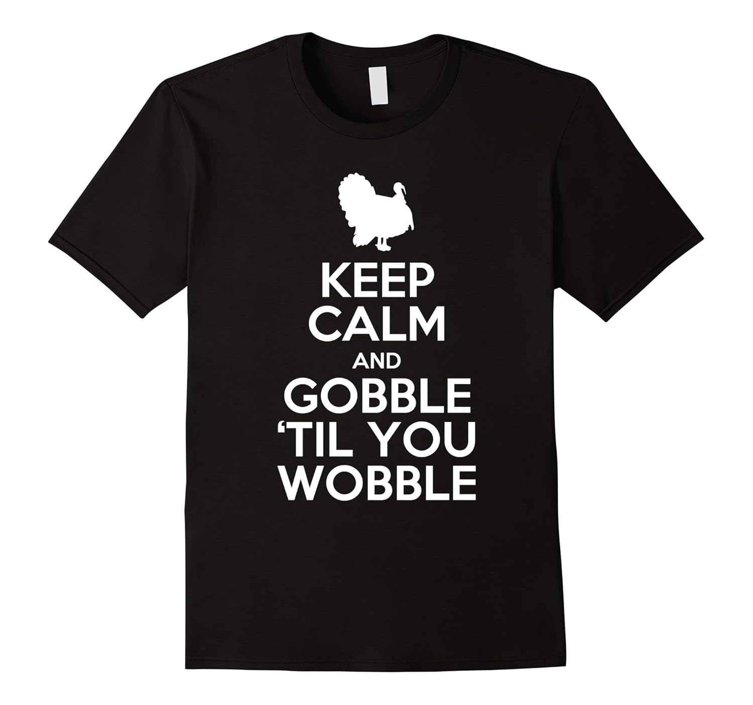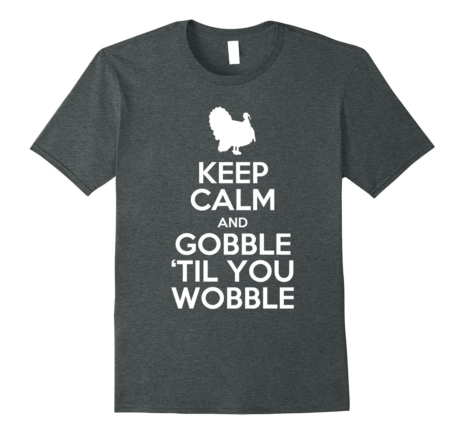 Solid colors: 100% Cotton; Heather Grey: 90% Cotton, 10% Polyester; All Other Heathers: 65% Cotton, 35% Polyester, Imported, Machine wash cold with like colors, dry low heat, keep calm and gobble ”til you wobble thanksgiving day fall season family holiday dinner party turkey eat eating food till until, quote textual saying cool gift ideas joke funny humor sarcastic, Lightweight, Classic fit, Double-needle sleeve and bottom hem