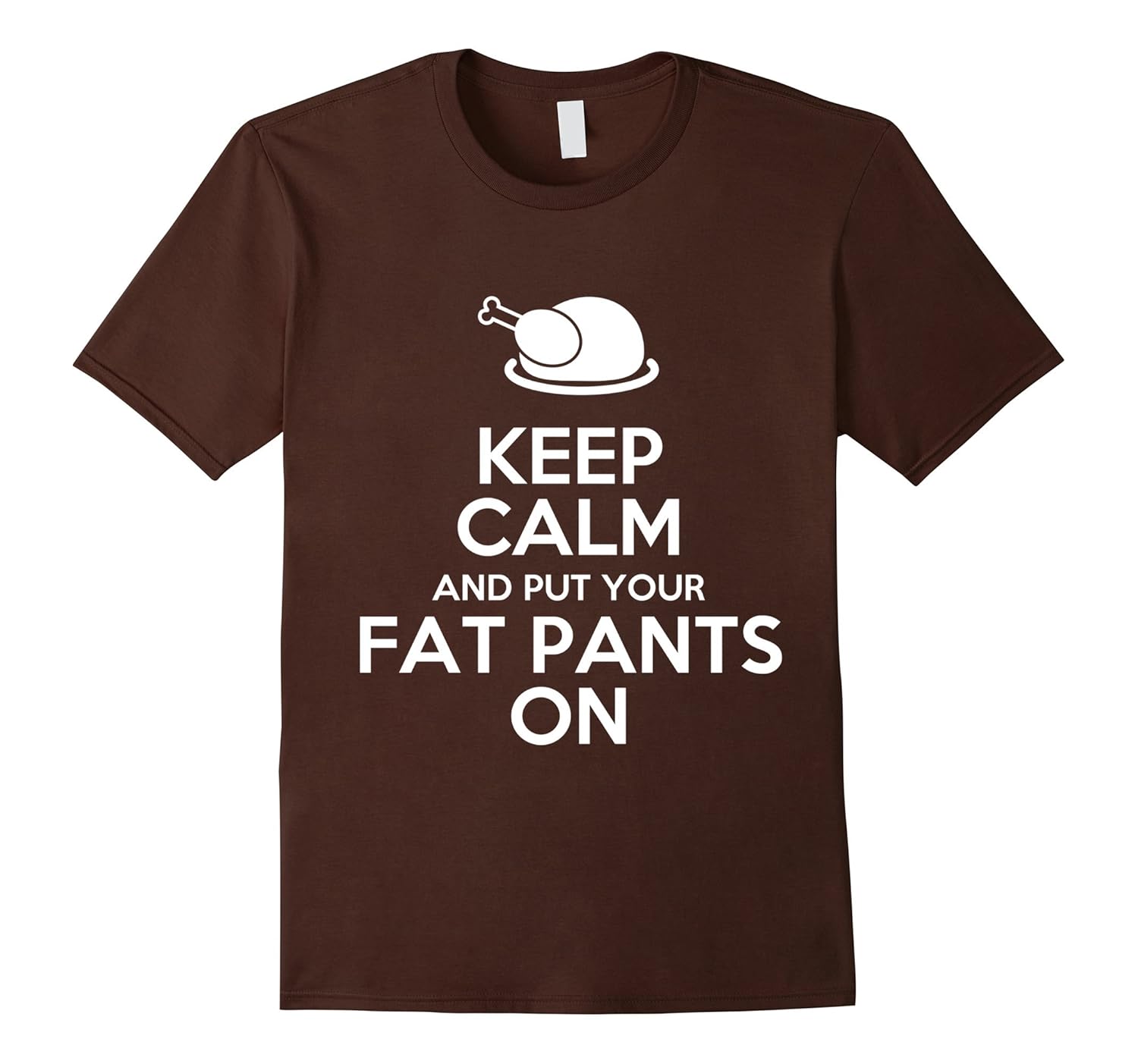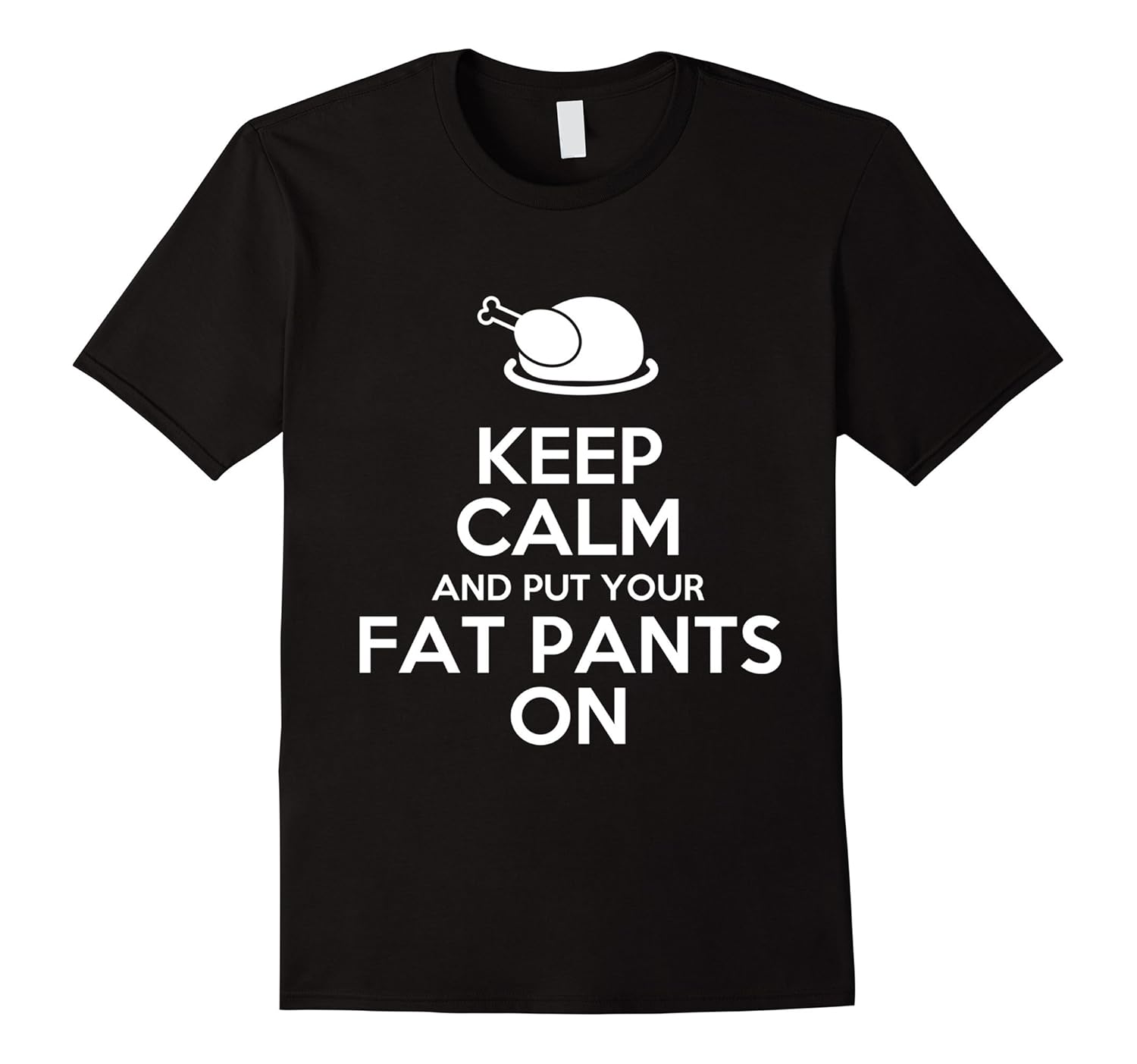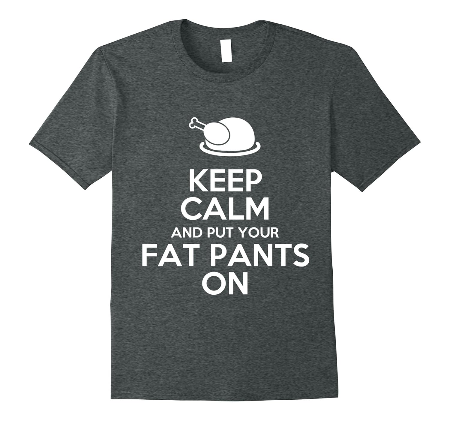 Solid colors: 100% Cotton; Heather Grey: 90% Cotton, 10% Polyester; All Other Heathers: 65% Cotton, 35% Polyester, Imported, Machine wash cold with like colors, dry low heat, keep calm and put your fat pants on thanksgiving day fall season family holiday dinner party turkey eat eating food, quote textual saying cool gift ideas joke funny humor sarcastic, Lightweight, Classic fit, Double-needle sleeve and bottom hem