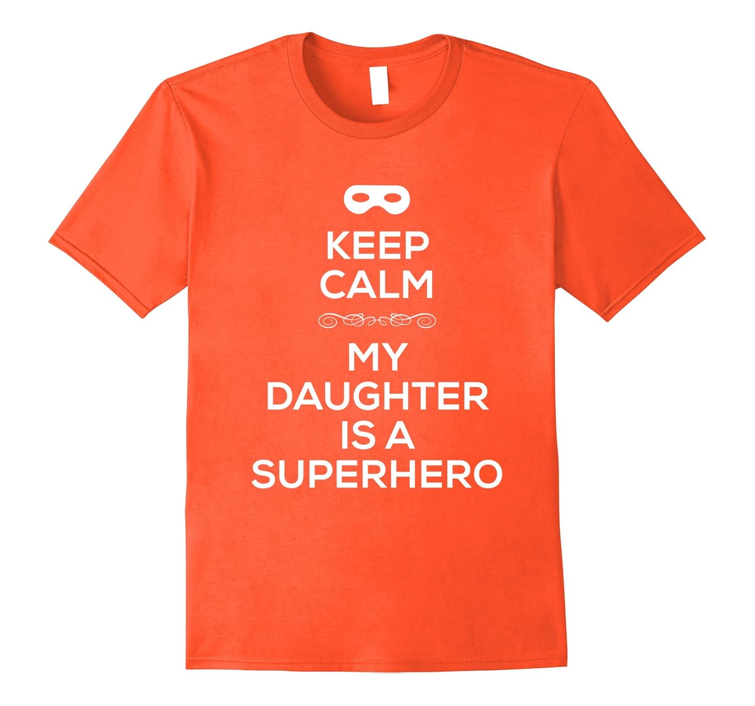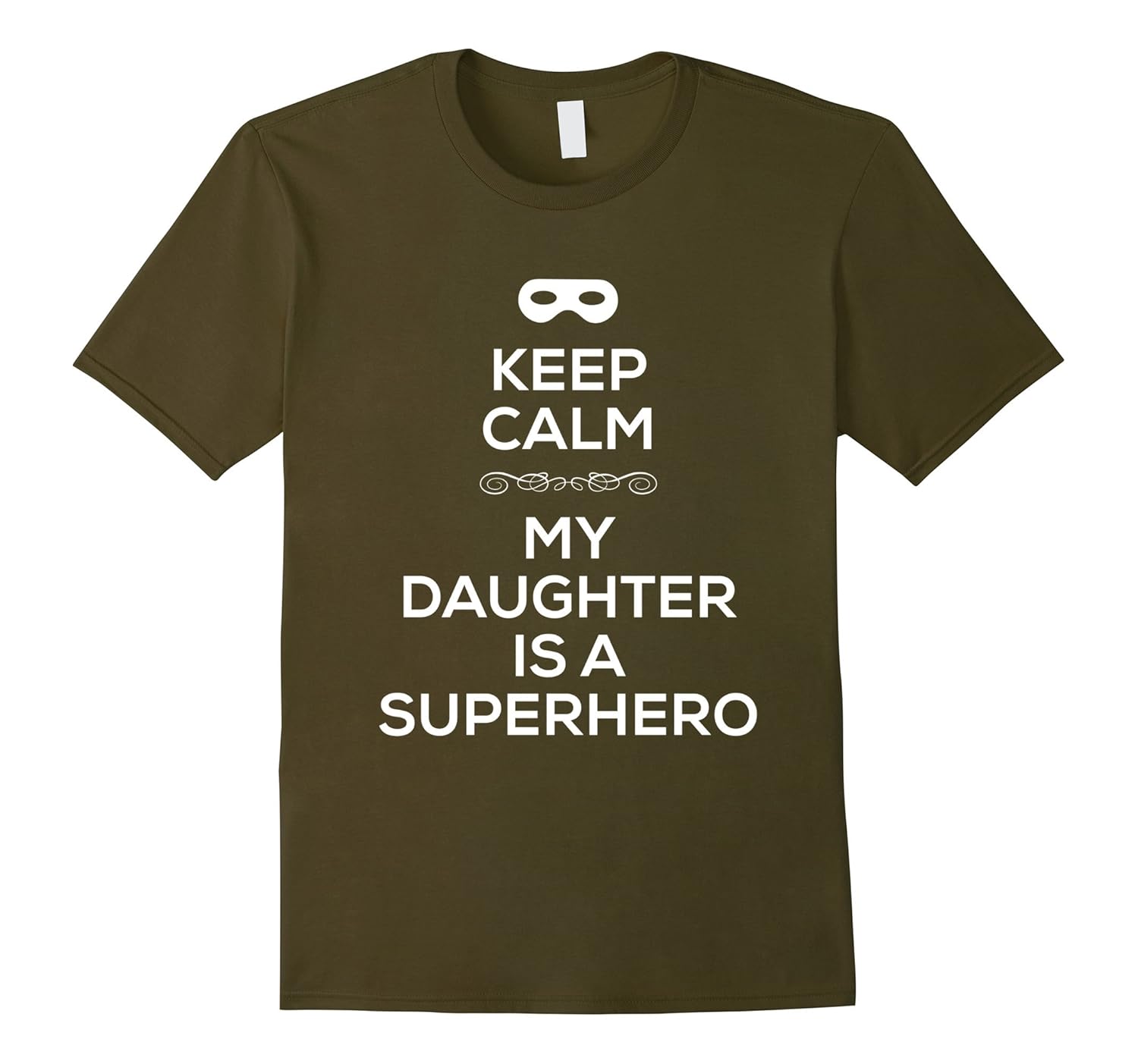 Solid colors: 100% Cotton; Heather Grey: 90% Cotton, 10% Polyester; All Other Heathers: 50% Cotton, 50% Polyester; Imported; Machine wash cold with like colors, dry low heat; Mask with Keep Calm My Daughter Is A Superhero. Birthday gift tee shirt idea for the proud dad of an exceptionally gifted daughter, officer, nurse, teacher, veteran, etc. Keep calm daughter shirt. Keep calm dad shirt.; Order a size larger for a baggy fit.; Lightweight, Classic fit, Double-needle sleeve and bottom hem