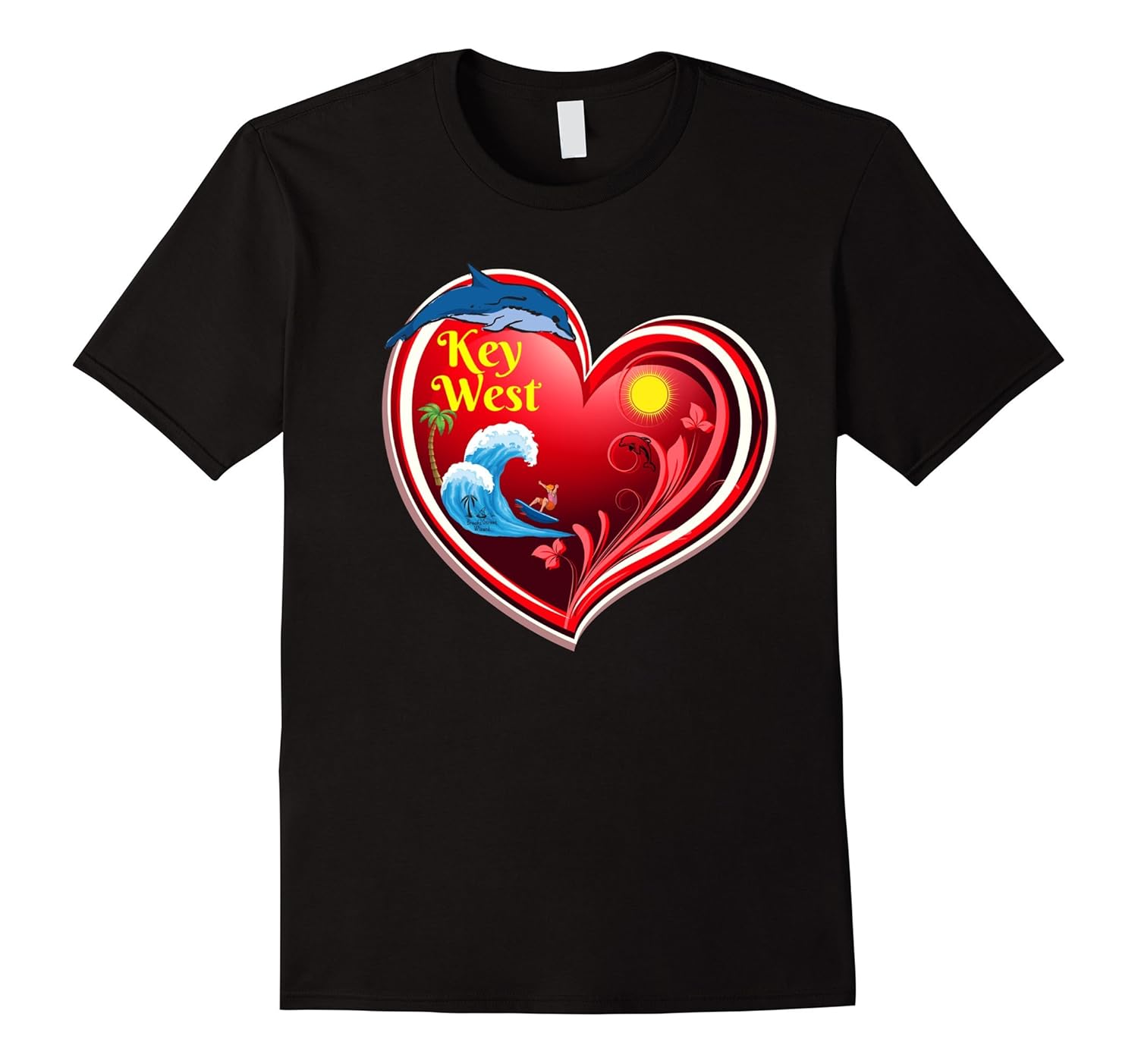 Key West Florida Love Sun Sea Dolphin Heart T-Shirt-ANZ