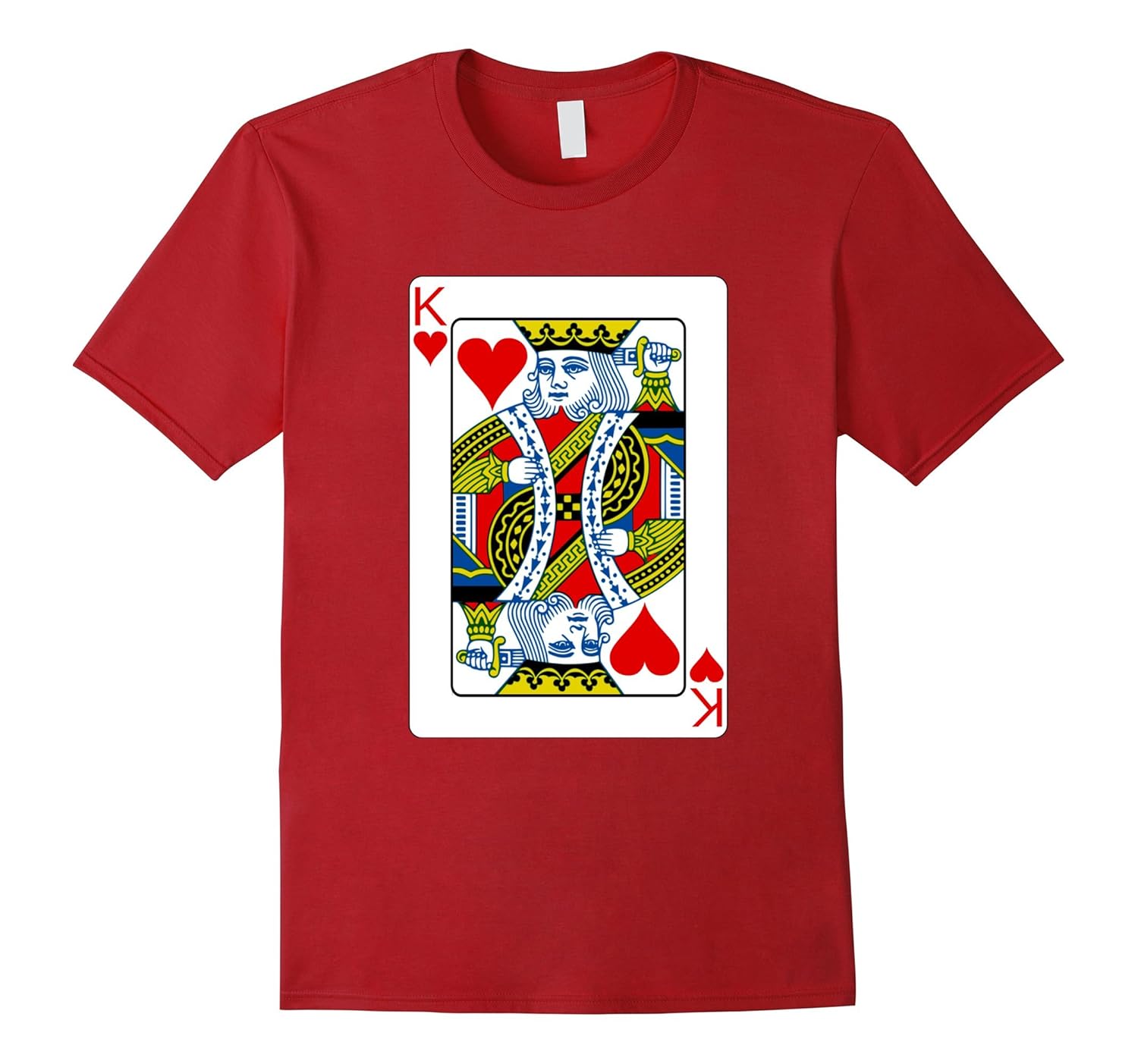 Solid colors: 100% Cotton; Heather Grey: 90% Cotton, 10% Polyester; All Other Heathers: 65% Cotton, 35% Polyester, Imported, Machine wash cold with like colors, dry low heat, King of Hearts playing card t-shirt. Deck of cards tshirts for halloween costume, funny poker player, card player, dress up like cards tee. Group, partner, twins funny costume trick or treat shirt. Lightweight, Classic fit, Double-needle sleeve and bottom hem