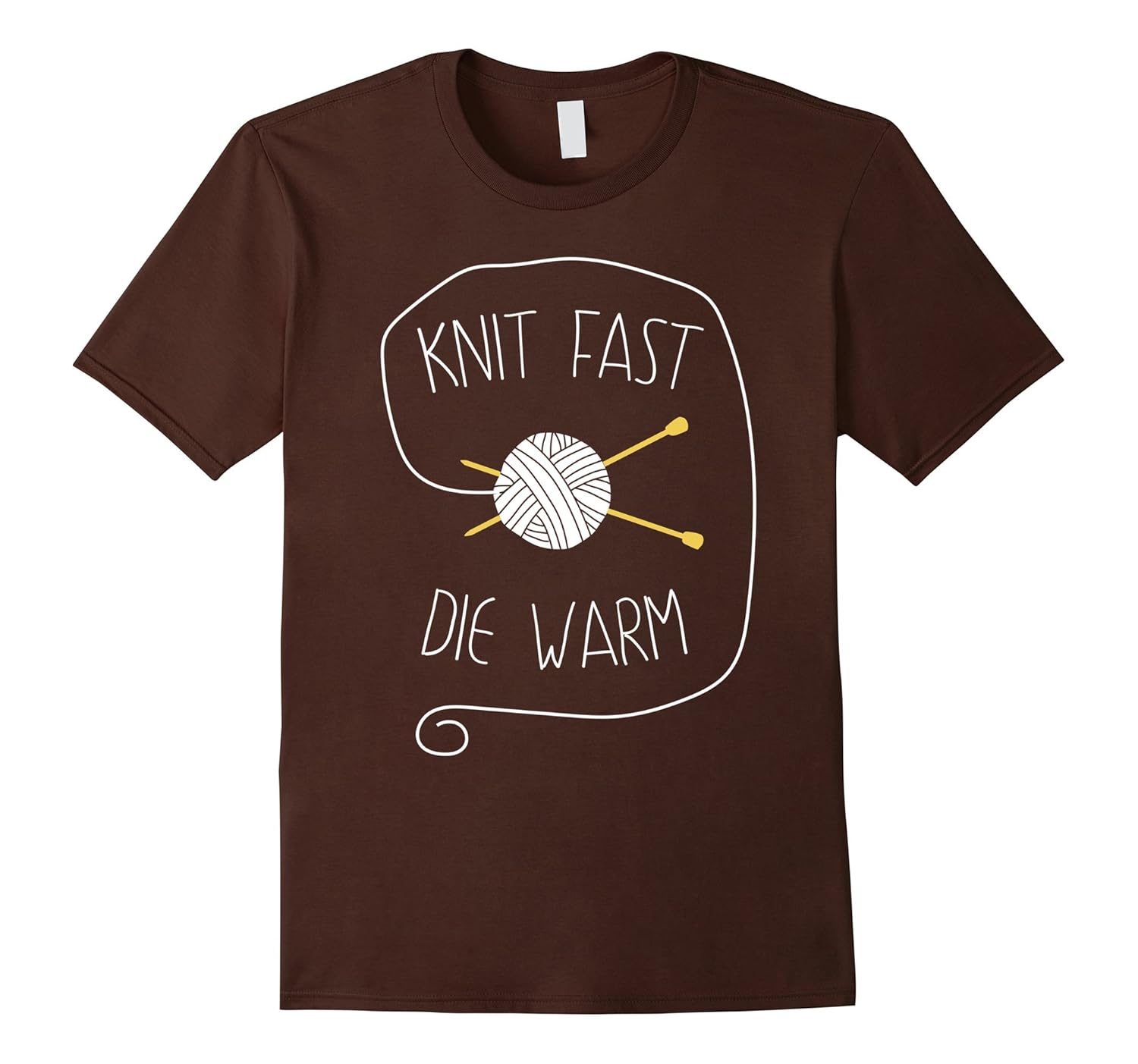 Solid colors: 100% Cotton; Heather Grey: 90% Cotton, 10% Polyester; All Other Heathers: 65% Cotton, 35% Polyester, Imported, Machine wash cold with like colors, dry low heat, Funny knitting t-shirt for those who love to knit. Knit fast and die warm shirt for the crafting hobby, Lightweight, Classic fit, Double-needle sleeve and bottom hem