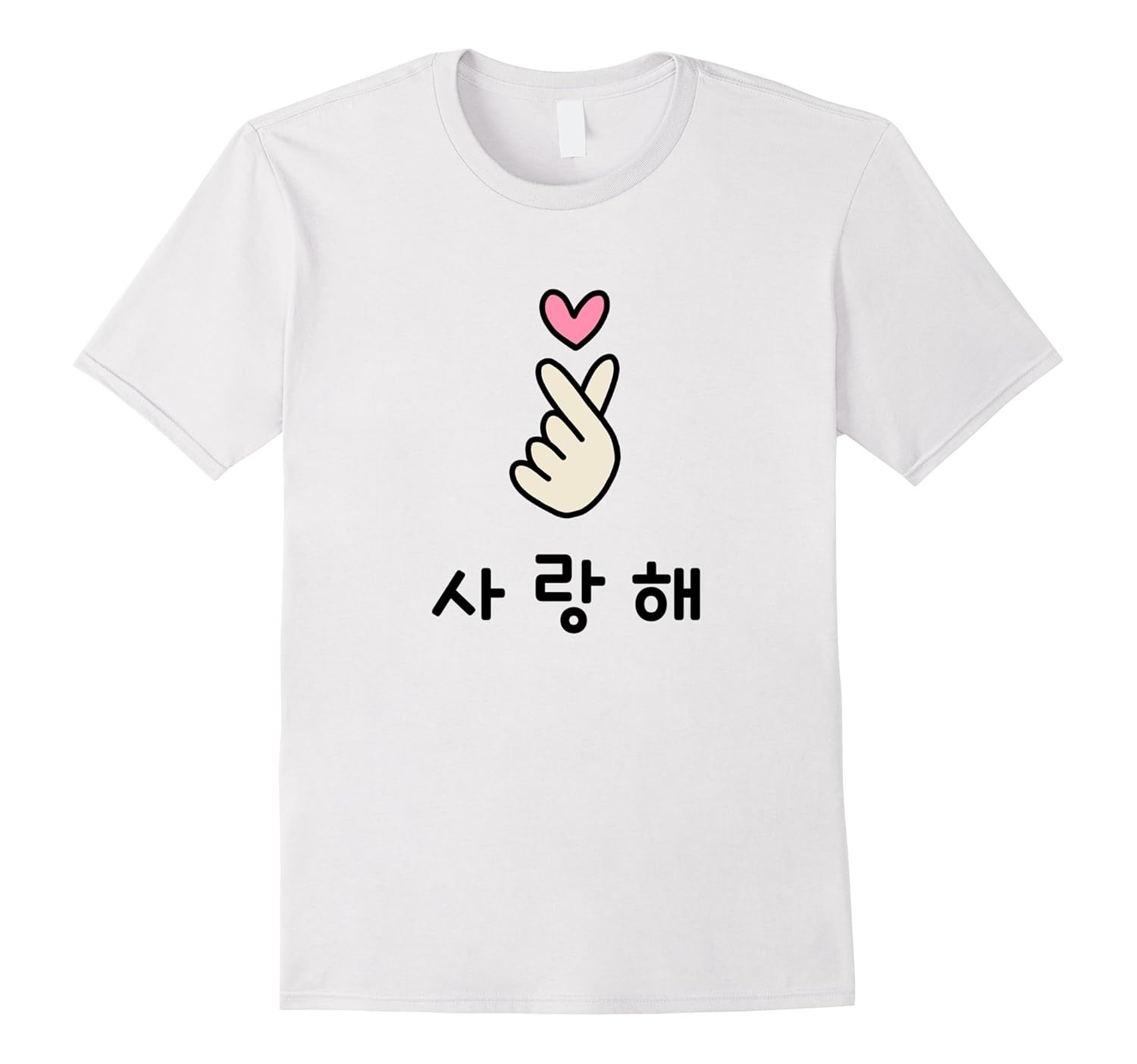 Solid colors: 100% Cotton; Heather Grey: 90% Cotton, 10% Polyester; All Other Heathers: 65% Cotton, 35% Polyester; Imported; Machine wash cold with like colors, dry low heat; Popular Korean Finger Heart celebrities make. This Saranghae graphic t shirt means I Love You in Korean. Perfect for people who love Korean Dramas, Kpop, K Drama, Seven, Korea, and Korean Fans.; This fun, bold, cool, original tee that makes a perfect gift for family Andamp; friends who love the United States or in Korea in places like Seoul, Busan, Incheon, Daegu.; Lightweight, Classic fit, Double-needle sleeve and bottom hem