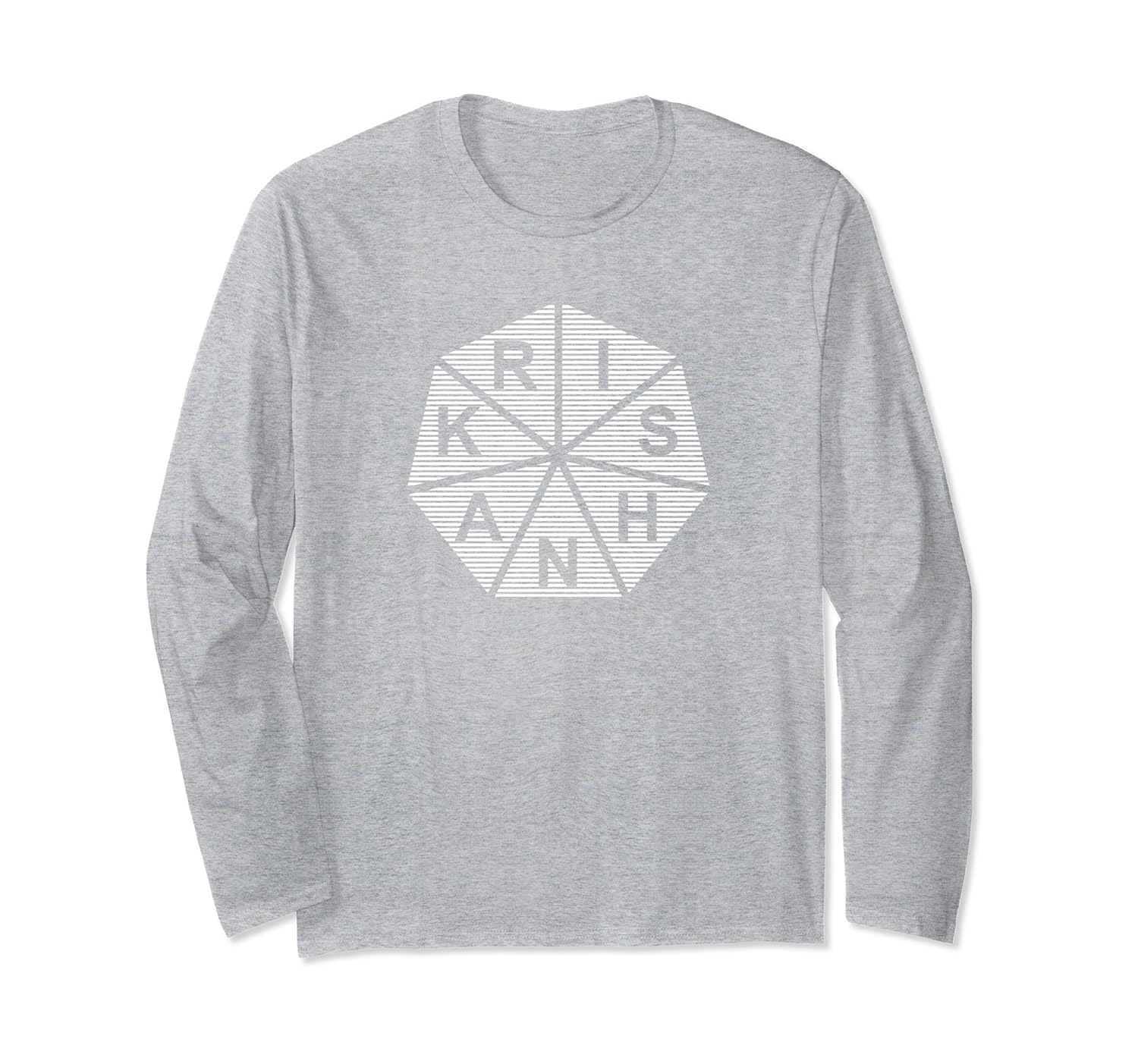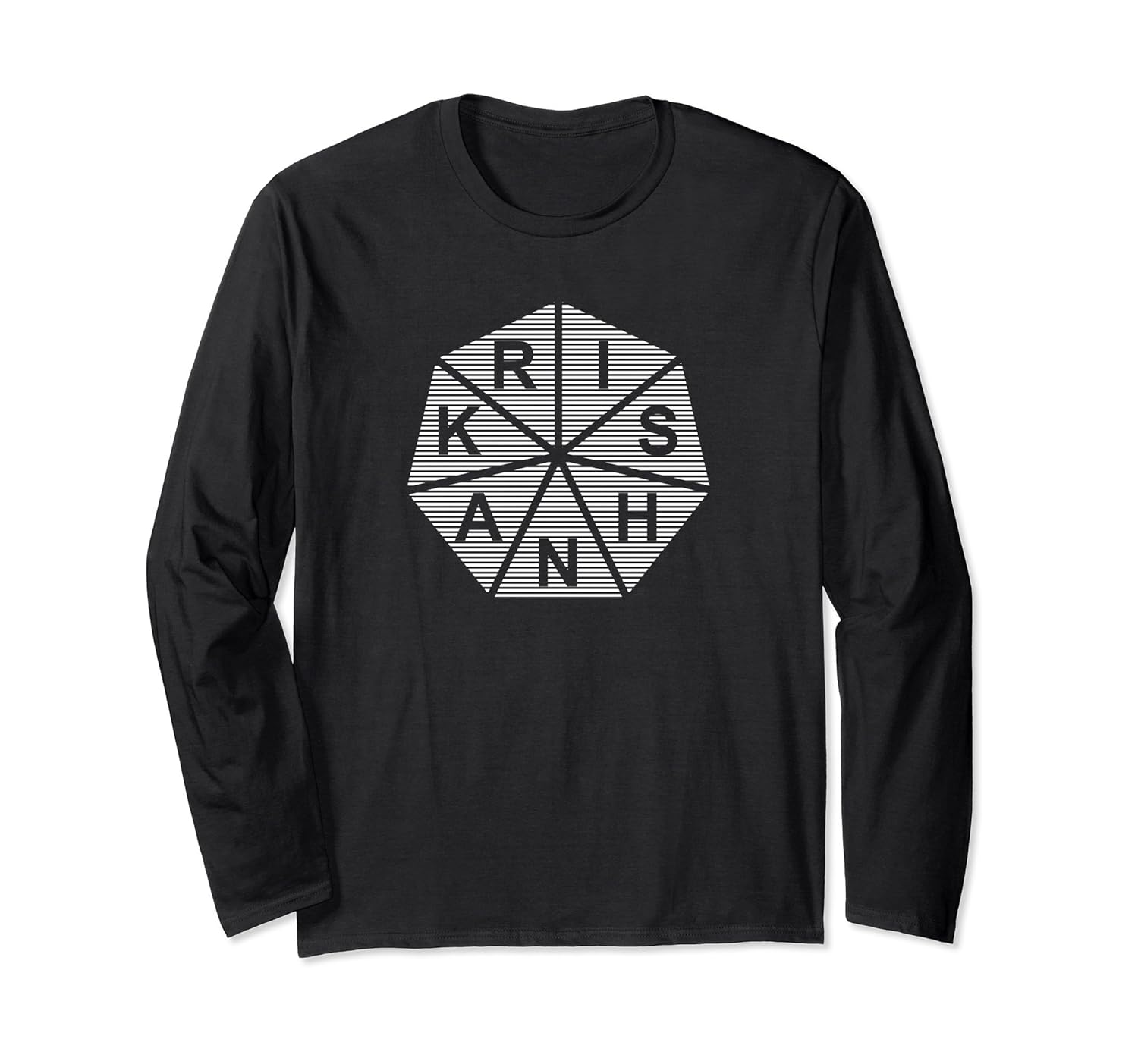 Solid colors: 100% Cotton; Heather Grey: 90% Cotton, 10% Polyester; All Other Heathers: 50% Cotton, 50% Polyester; Imported; Machine wash cold with like colors, dry low heat; This Krishna long sleeve t-shirt is the perfect gift long sleeve tee for lovers of Hinduism who enjoy the history of ancient gods and goddesses including Krishna, the god of compassion, tenderness, and love and the 8th avatar of Vishnu.; Featuring a simple design with lined shapes and clean Krishna text, this long sleeve shirt is perfect to wear to school or college, or while reading about Hindu history.; Lightweight, Classic fit, Double-needle sleeve and bottom hem