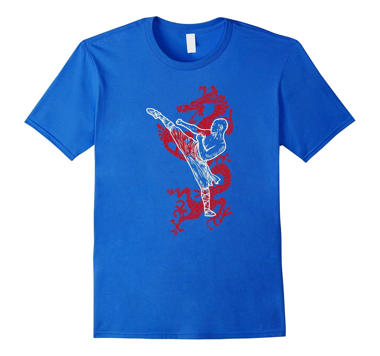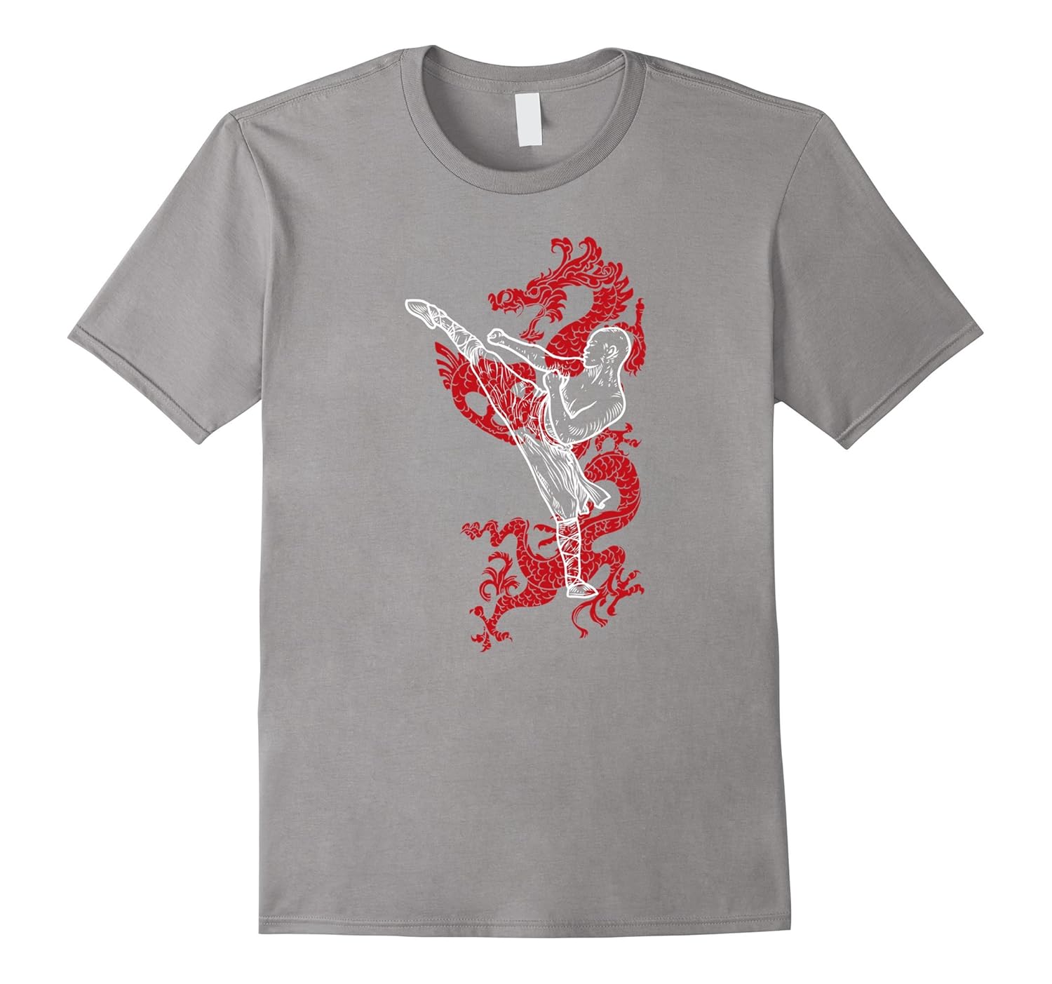Solid colors: 100% Cotton; Heather Grey: 90% Cotton, 10% Polyester; All Other Heathers: 65% Cotton, 35% Polyester; Imported; Machine wash cold with like colors, dry low heat; Cool graphic design Kung Fu t shirt uniform apparel gift for martial arts, shaolin kickboxing class, boys girls kids and teacher master visiting the temple of Wu Shu origin. Relaxed fit martial arts tshirt.; Featuring a red Chinese dragon background in ancient art design, with wu shu monk practicing fist and high kick in competition. Zoom in for the fine details in this cool kung fu tee shirt apparel.; Lightweight, Classic fit, Double-needle sleeve and bottom hem