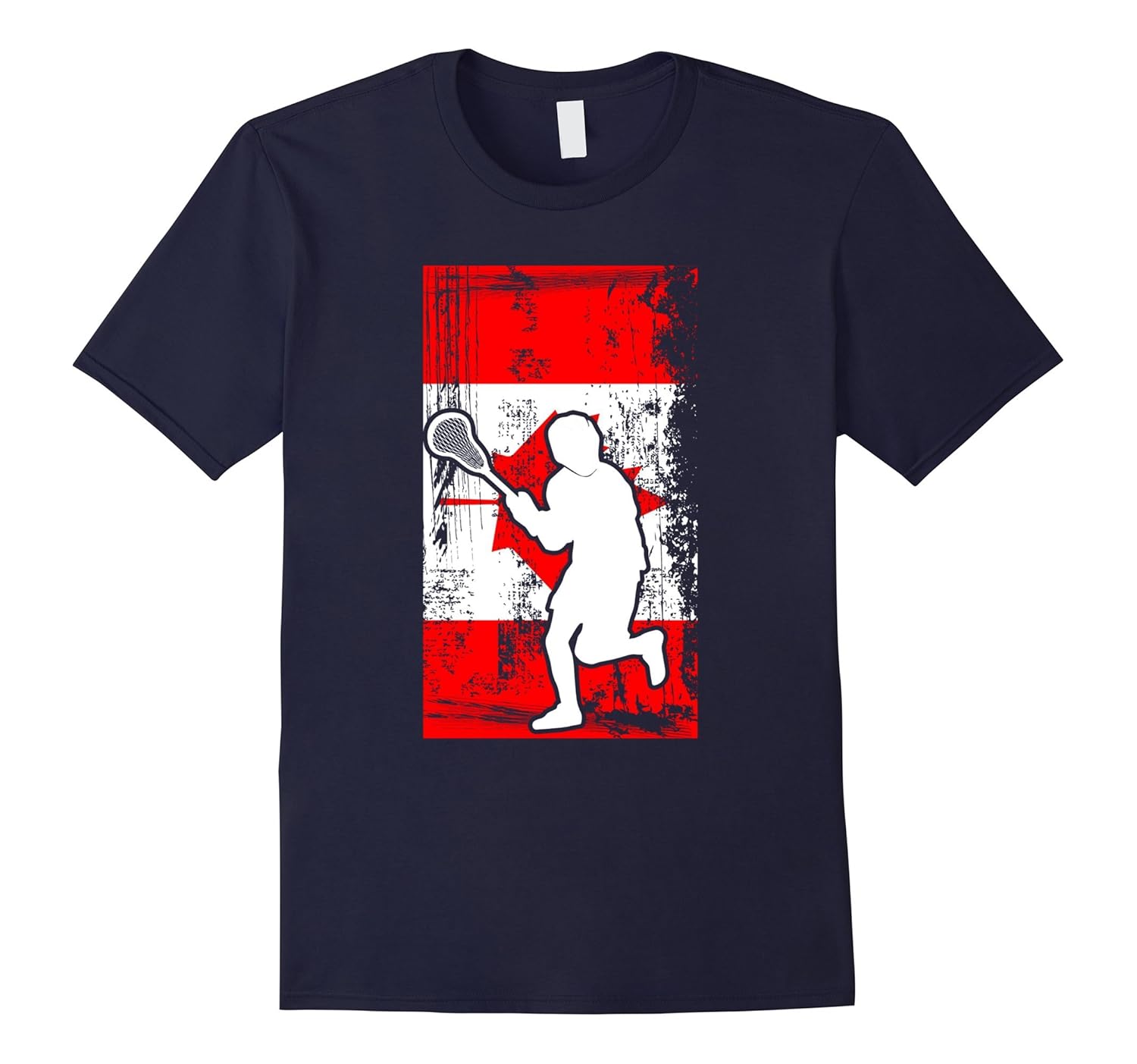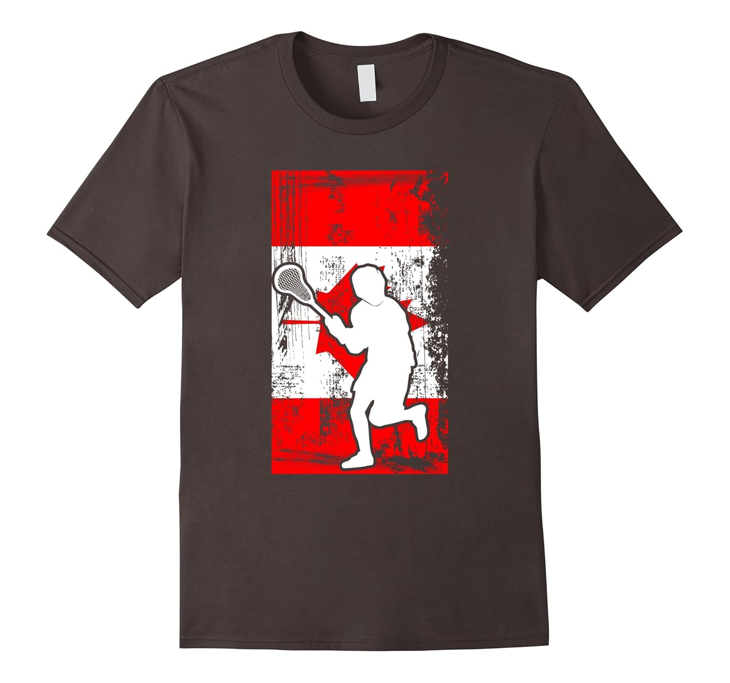 Lacrosse Sports Player Canada Flag Silhouette T-Shirt-ANZ