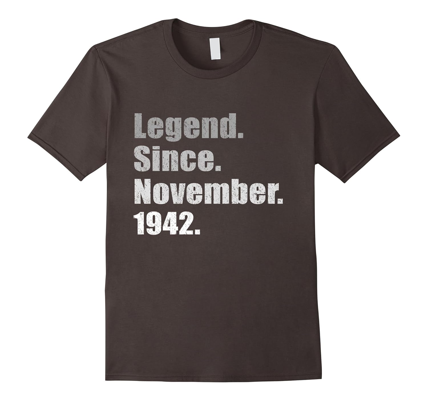 Solid colors: 100% Cotton; Heather Grey: 90% Cotton, 10% Polyester; All Other Heathers: 65% Cotton, 35% Polyester, Imported, Machine wash cold with like colors, dry low heat, This 75th Birthday T-Shirt is designed to be fitted. For a more baggy fit, please order a size up. Whether you are King or Queen, Prince or Princess, Myth or Legend, This is a must have stuff or a perfect gift for those who are born in November 1942. Cool great gift for your Family, Brother, Sister, Sibling, Cousin, Friends, Husband, Wife, Father, Mother, Grandmother, Grandfather, Mom, Dad, on any occasions including Birthday, Christmas, Thanksgiving Day, Halloween, New Year, Valentines, Anniversary. Lightweight, Classic fit, Double-needle sleeve and bottom hem