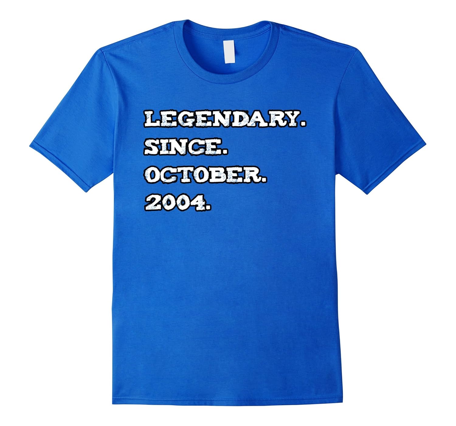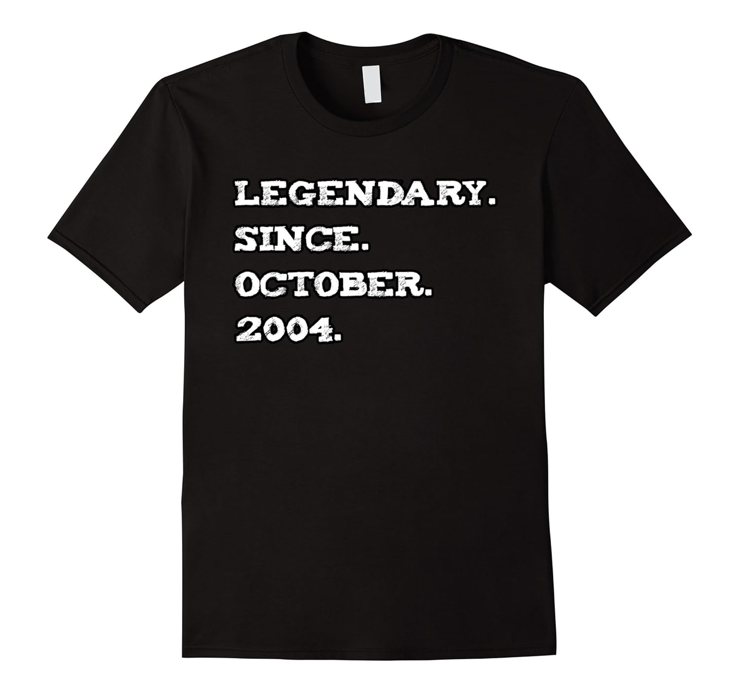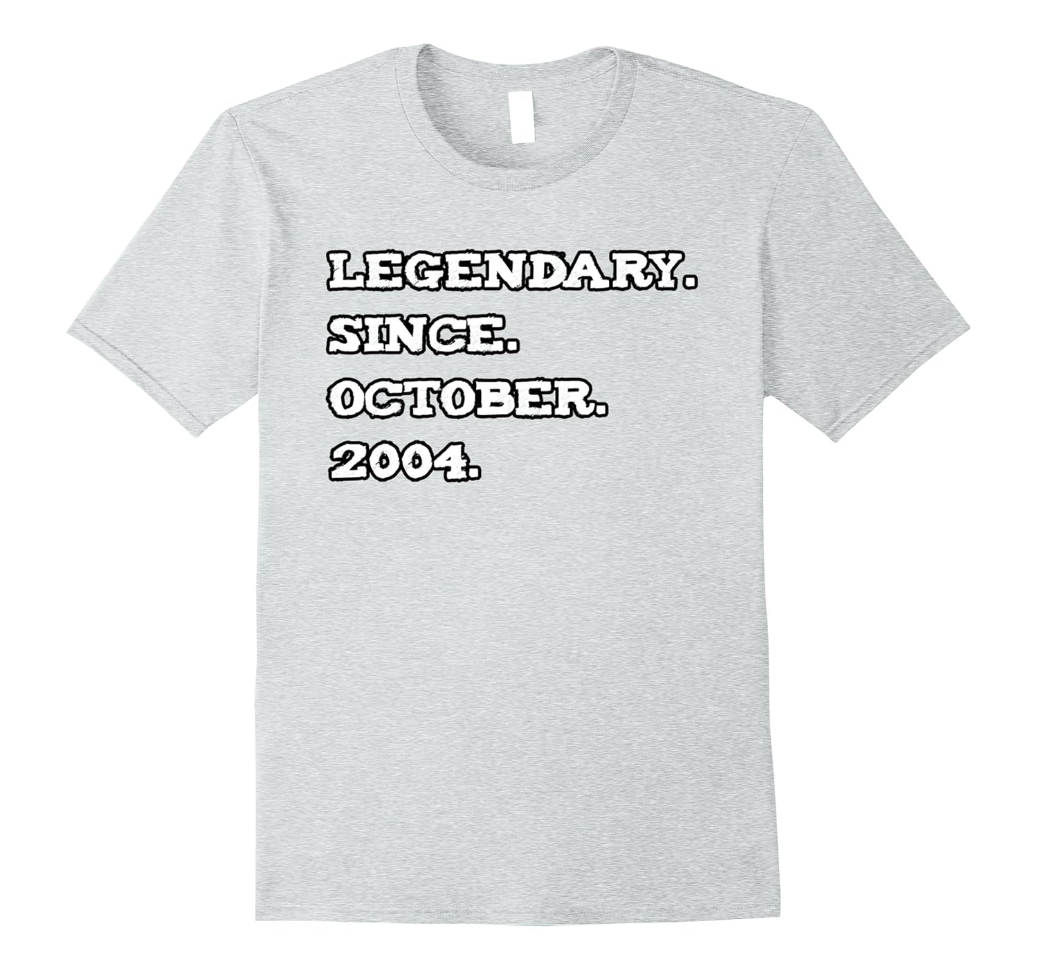 Solid colors: 100% Cotton; Heather Grey: 90% Cotton, 10% Polyester; All Other Heathers: 65% Cotton, 35% Polyester, Imported, Machine wash cold with like colors, dry low heat, Legendary October 2004 13th Birthday t-shirt! This hilarious 13th Birthday tshirt is a hilarious birthday gift for boys or Christmas gift for girls! The 13th birthday is a big one, so make sure to get them a funny birthday tee shirt!, Know someone who”s ben a legend since October 2004. This is a great tshirt for a boy born in 2004 or girl born in 2004! This shirt is a cool vintage 2004 t-shirt with disressed text. Grab one for the birthday boy or birthday girl today!, Lightweight, Classic fit, Double-needle sleeve and bottom hem