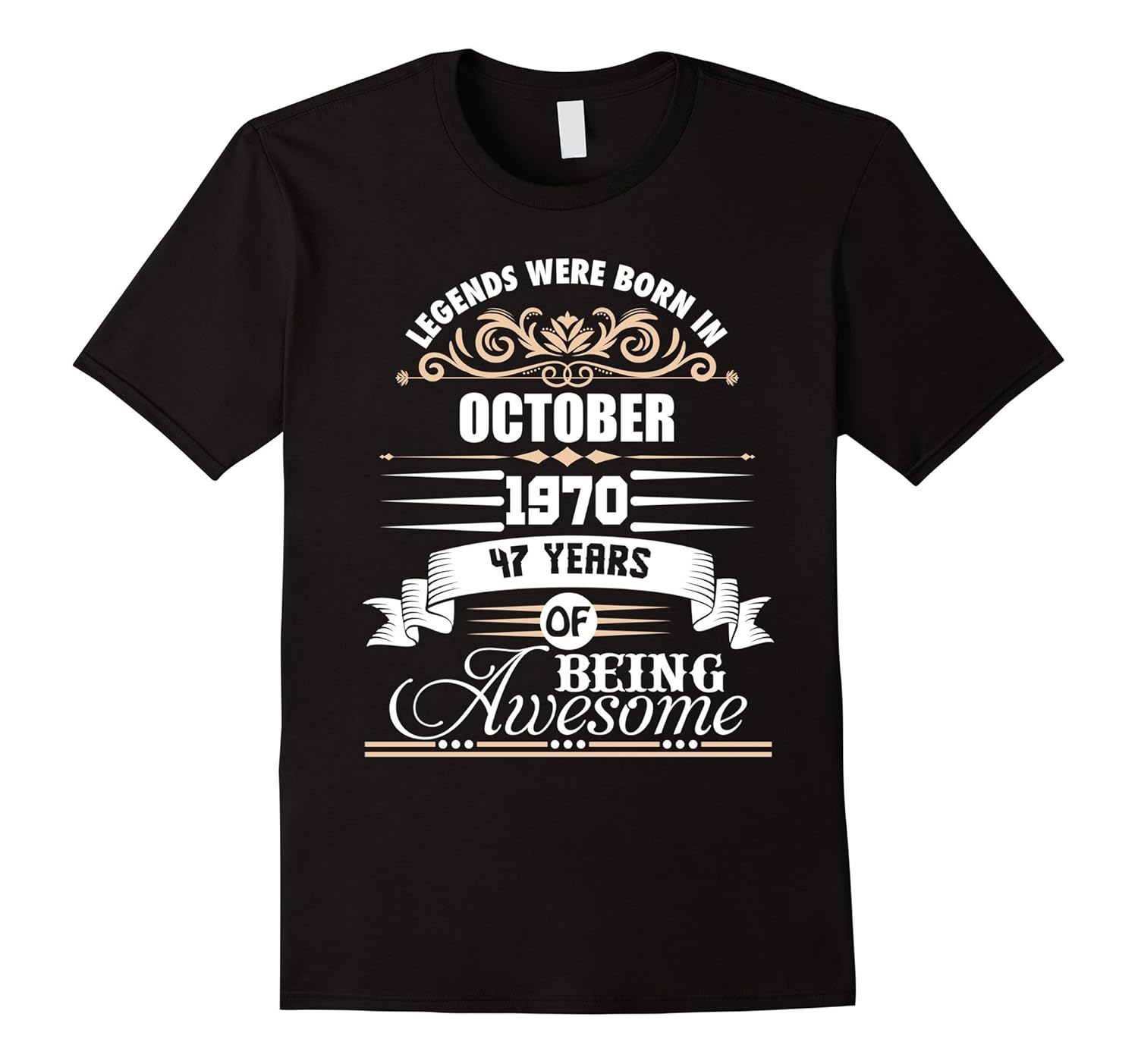 Solid colors: 100% Cotton; Heather Grey: 90% Cotton, 10% Polyester; All Other Heathers: 65% Cotton, 35% Polyester, Imported, Machine wash cold with like colors, dry low heat, 47th Birthday Gift T-Shirt. october 1970, october T-Shirt, born in october shirt, 47 Years Of Being Awesome Birthday Shirt for Men and Women, Birthday gift idea for people born in october, 1970 or anyone who is turning 47 years old, vintage style graphic tee. Perfect for a birthday party. Lightweight, Classic fit, Double-needle sleeve and bottom hem
