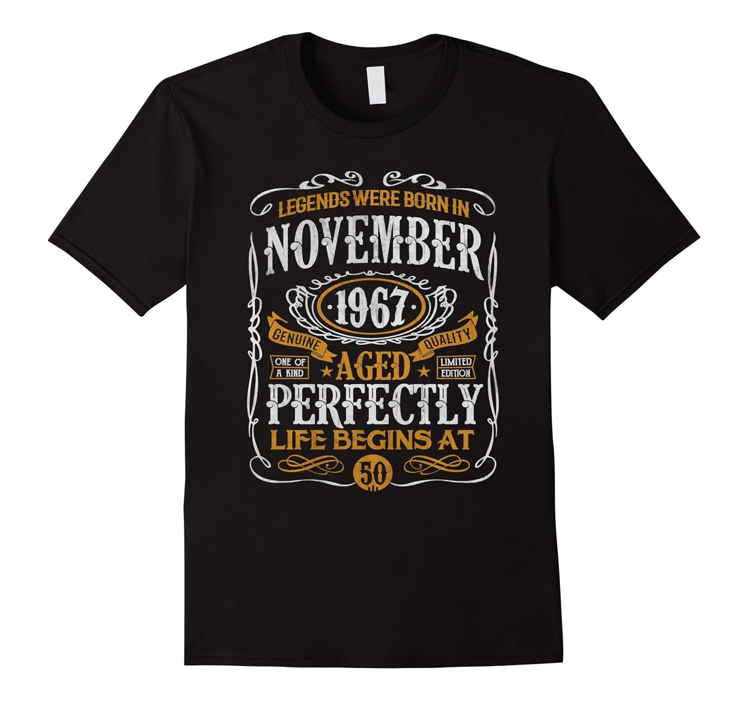 Solid colors: 100% Cotton; Heather Grey: 90% Cotton, 10% Polyester; All Other Heathers: 65% Cotton, 35% Polyester, Imported, Machine wash cold with like colors, dry low heat, Legends Were Born in November Shirt for Men and Women. 50th Bday Gift Aged Perfectly T-Shirt. Makes a perfect birthday gift for him or her. Birthday gift idea for people born in November, 1967 or anyone who is turning 50 years old, vintage style graphic tee. Perfect for a birthday party. Lightweight, Classic fit, Double-needle sleeve and bottom hem