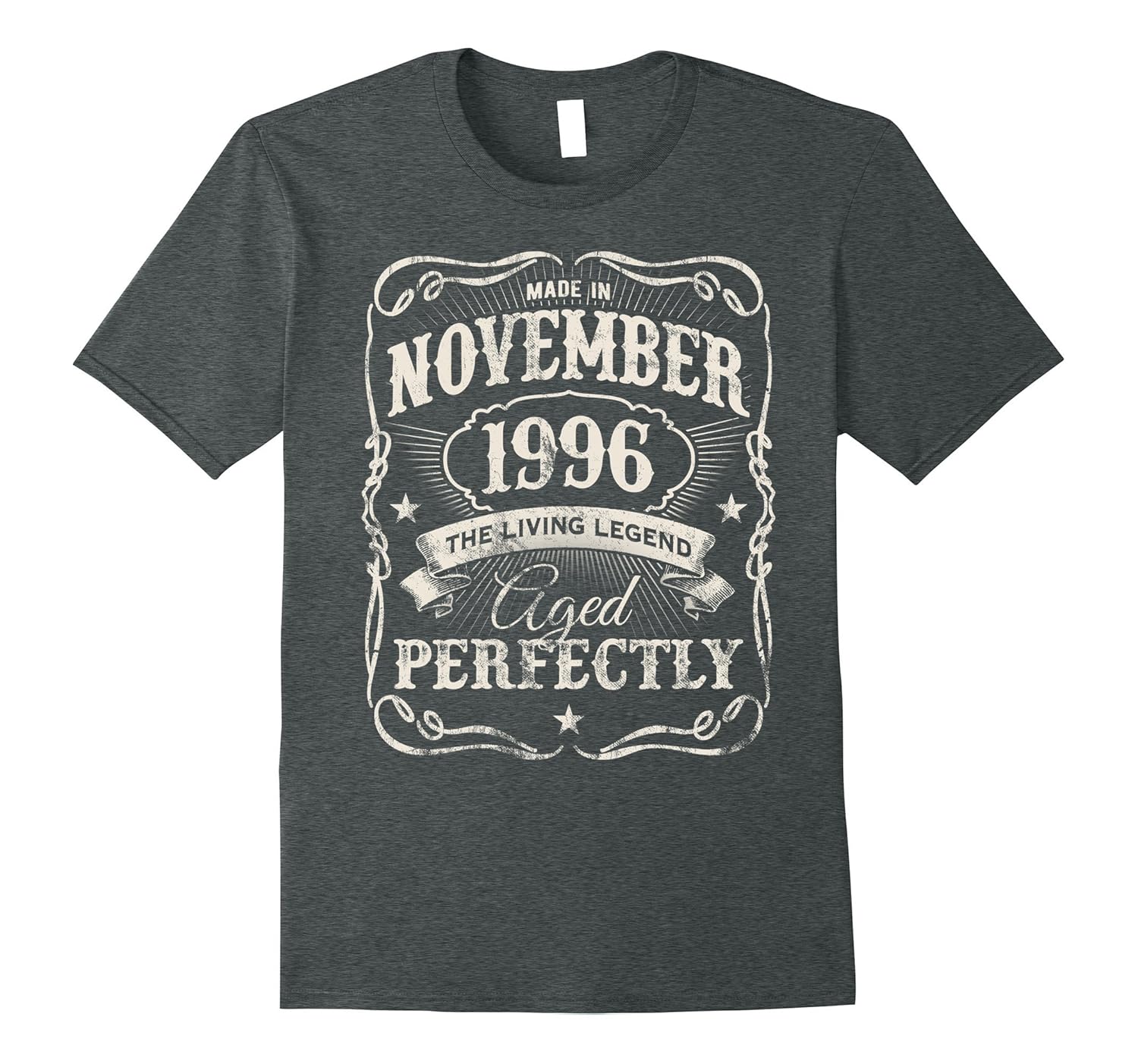 Solid colors: 100% Cotton; Heather Grey: 90% Cotton, 10% Polyester; All Other Heathers: 65% Cotton, 35% Polyester, Imported, Machine wash cold with like colors, dry low heat, Perfectly Aged, A Living Legend, Made In November. Featuring a distressed design giving the garment a worn-in look. Aged Perfectly. All Original Parts. Limited Edition. One of a kind. Original Quality Without Question. Makes a perfect gift for him or her. Lightweight, Classic fit, Double-needle sleeve and bottom hem