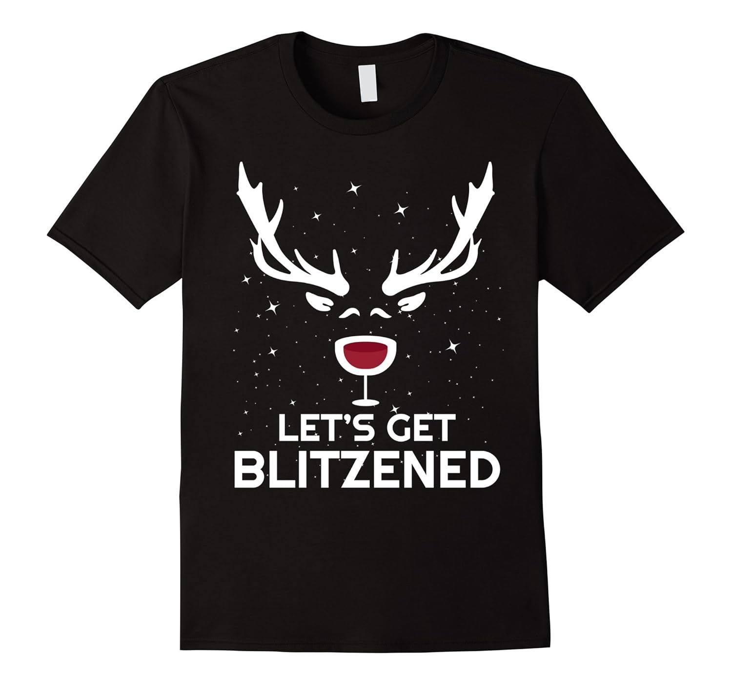 Solid colors: 100% Cotton; Heather Grey: 90% Cotton, 10% Polyester; All Other Heathers: 65% Cotton, 35% Polyester; Imported; Machine wash cold with like colors, dry low heat; If you love wine and having a drink every once in a while, the Lets Get Blitzened shirt is just for you.; This funny shirt with a reindeer joke is a great gift or present idea for people who like to party around Christmas and New Years Eve.; Lightweight, Classic fit, Double-needle sleeve and bottom hem