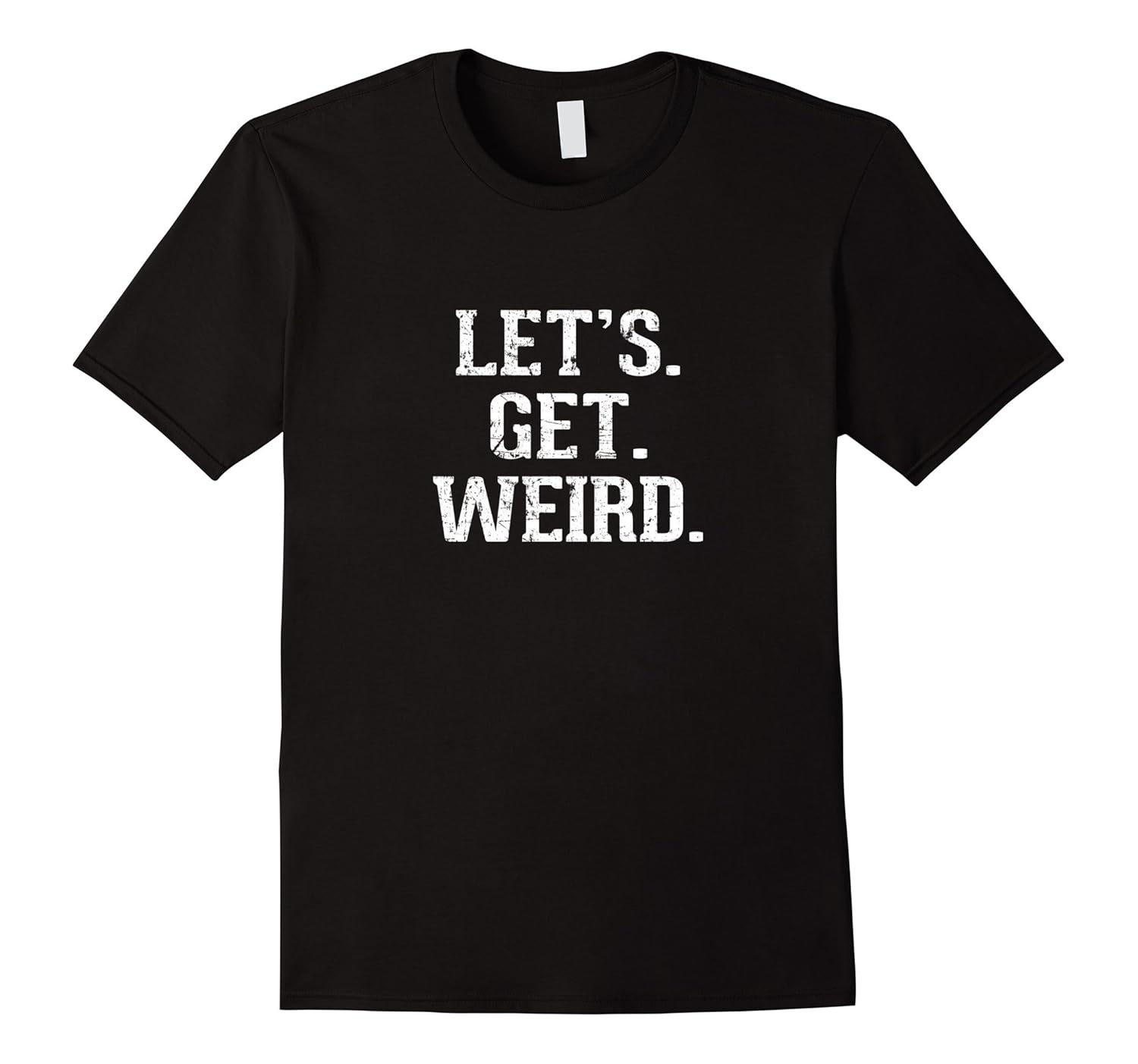 Solid colors: 100% Cotton; Heather Grey: 90% Cotton, 10% Polyester; All Other Heathers: 65% Cotton, 35% Polyester; Imported; Machine wash cold with like colors, dry low heat; Lets get weird with this concert, festival and drinking t-shirt – show that youre unique, crazy and random while out with friends!; Lets get weird on a road trip, when hanging out with your weirdos or when out at a club. Get weird, get silly and have fun with this lets get weird t-shirt.; Lightweight, Classic fit, Double-needle sleeve and bottom hem