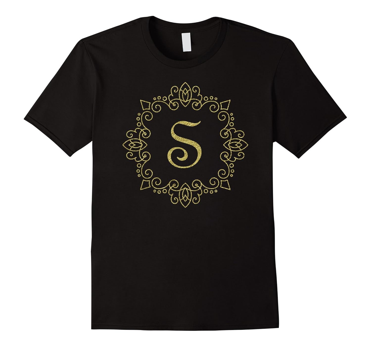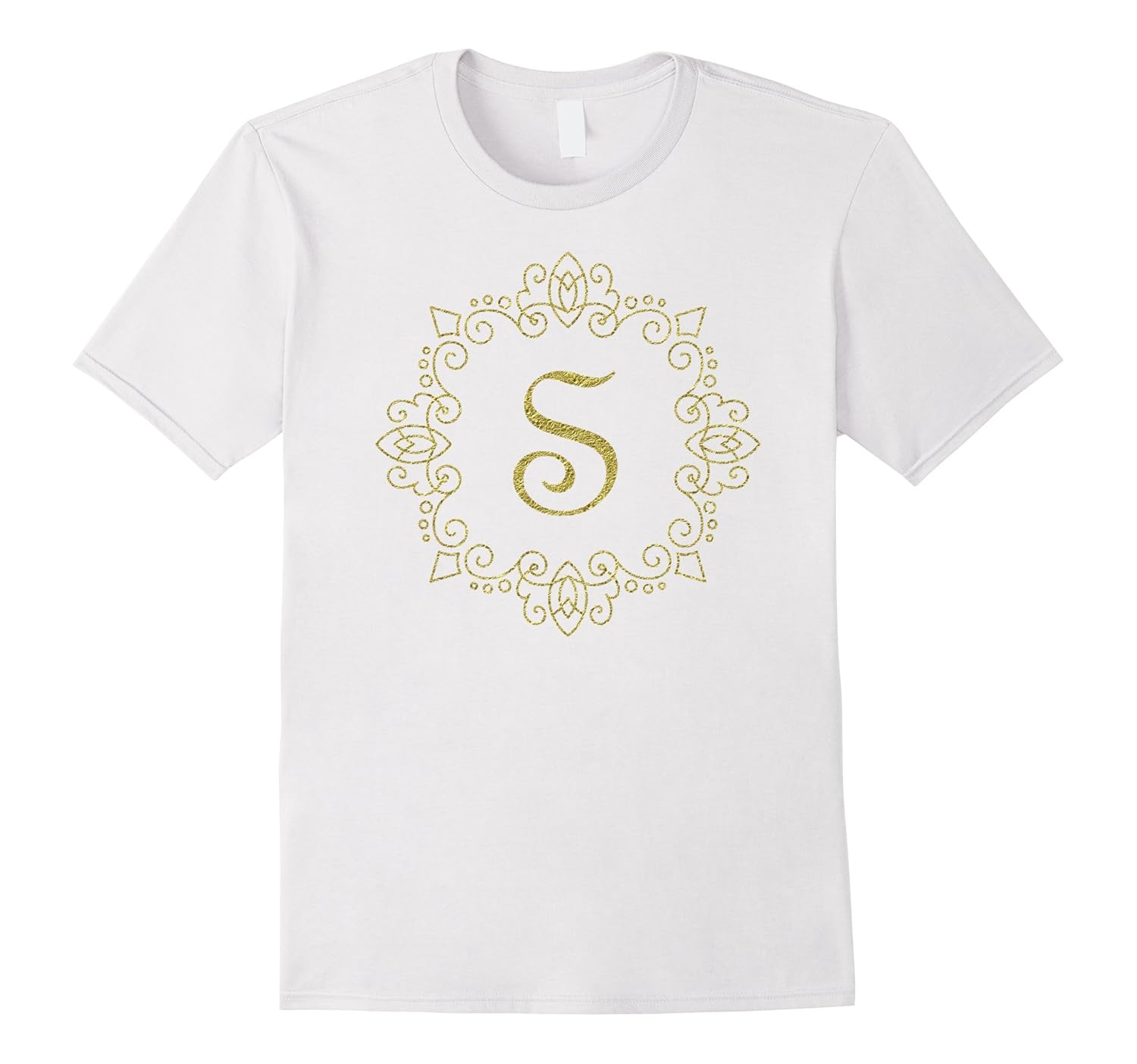 Solid colors: 100% Cotton; Heather Grey: 90% Cotton, 10% Polyester; All Other Heathers: 65% Cotton, 35% Polyester, Imported, Machine wash cold with like colors, dry low heat, Are you looking for a fun gift for your bridesmaids. Look no further than this gold monogrammed shirt for women. This letter t-shirt for women features the initial S in an elegant script surrounded by golden scroll work. This Letter S t shirt is fitted. For a looser fit please order a size larger than typical. Please note that this shirt is printed with non-reflective ink. This initial shirt is a perfect birthday or Christmas gift for moms, girls, and; maids of honor. Lightweight, Classic fit, Double-needle sleeve and bottom hem