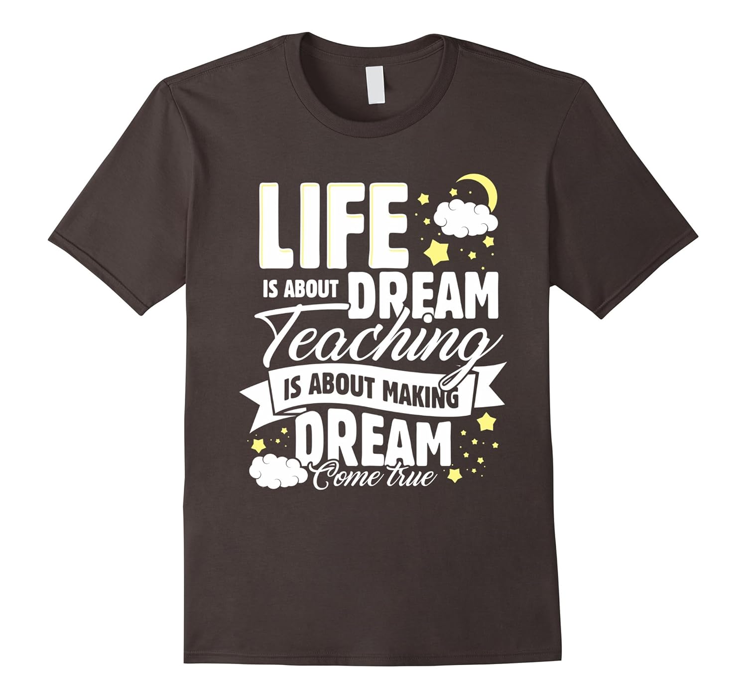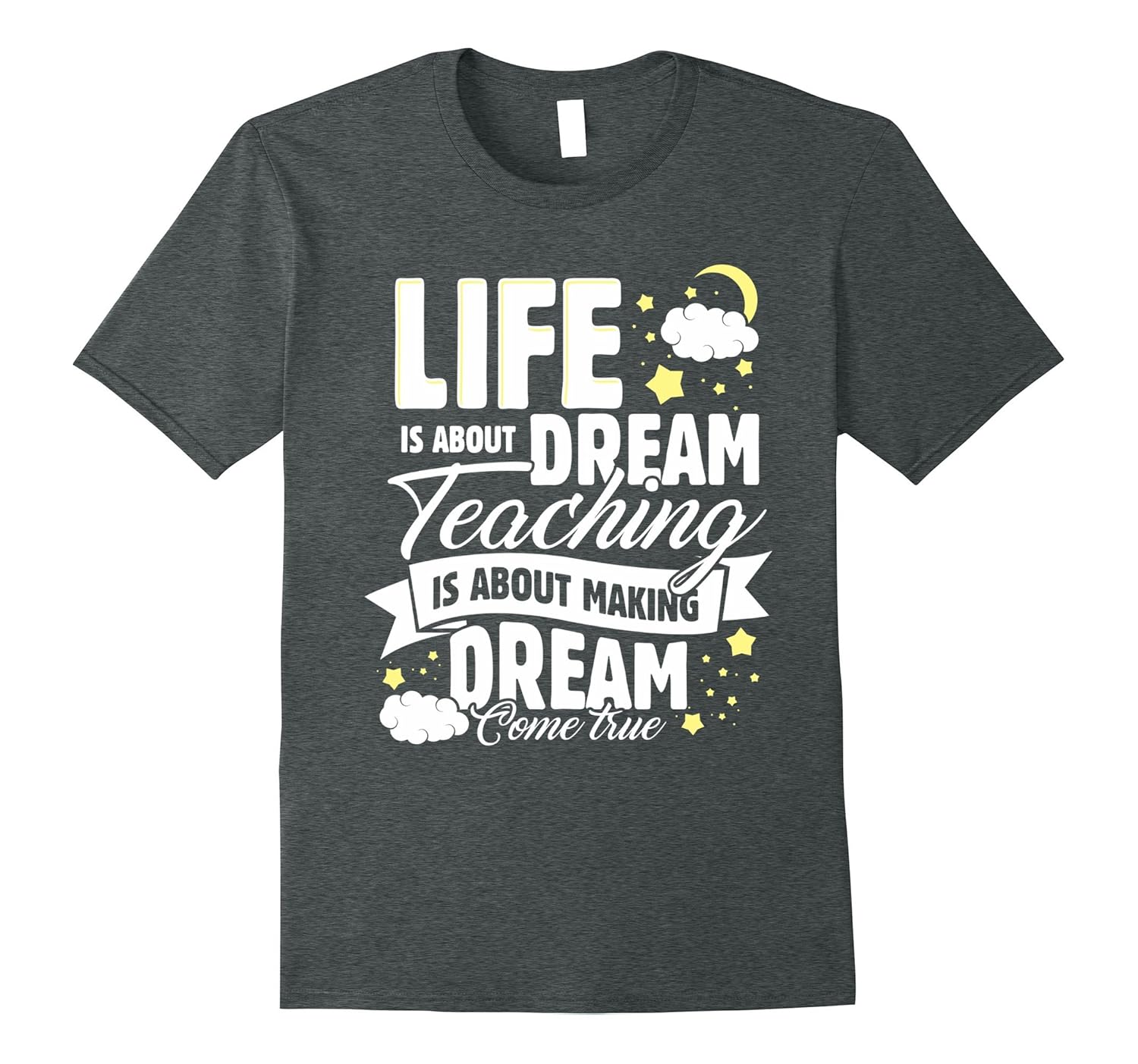 Solid colors: 100% Cotton; Heather Grey: 90% Cotton, 10% Polyester; All Other Heathers: 65% Cotton, 35% Polyester; Imported; Machine wash cold with like colors, dry low heat; Life is About Dreams – Teacher T-Shirt is designed to be fitted. For a more loose fit, please order a size up. Makes the perfect gift for that special someone in your life. Maybe for a friend, dad, mom, wife, husband, girlfriend or boyfriend.; Great gift for Christmas, Birthday, Valentines Day, Couple Relationship Anniversary, Wedding, Graduation, Teacher anniversary.; Lightweight, Classic fit, Double-needle sleeve and bottom hem