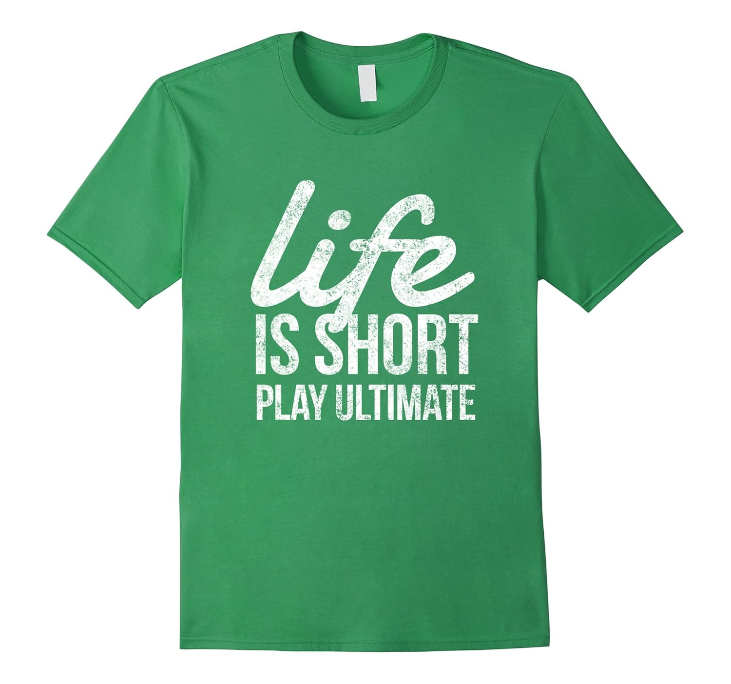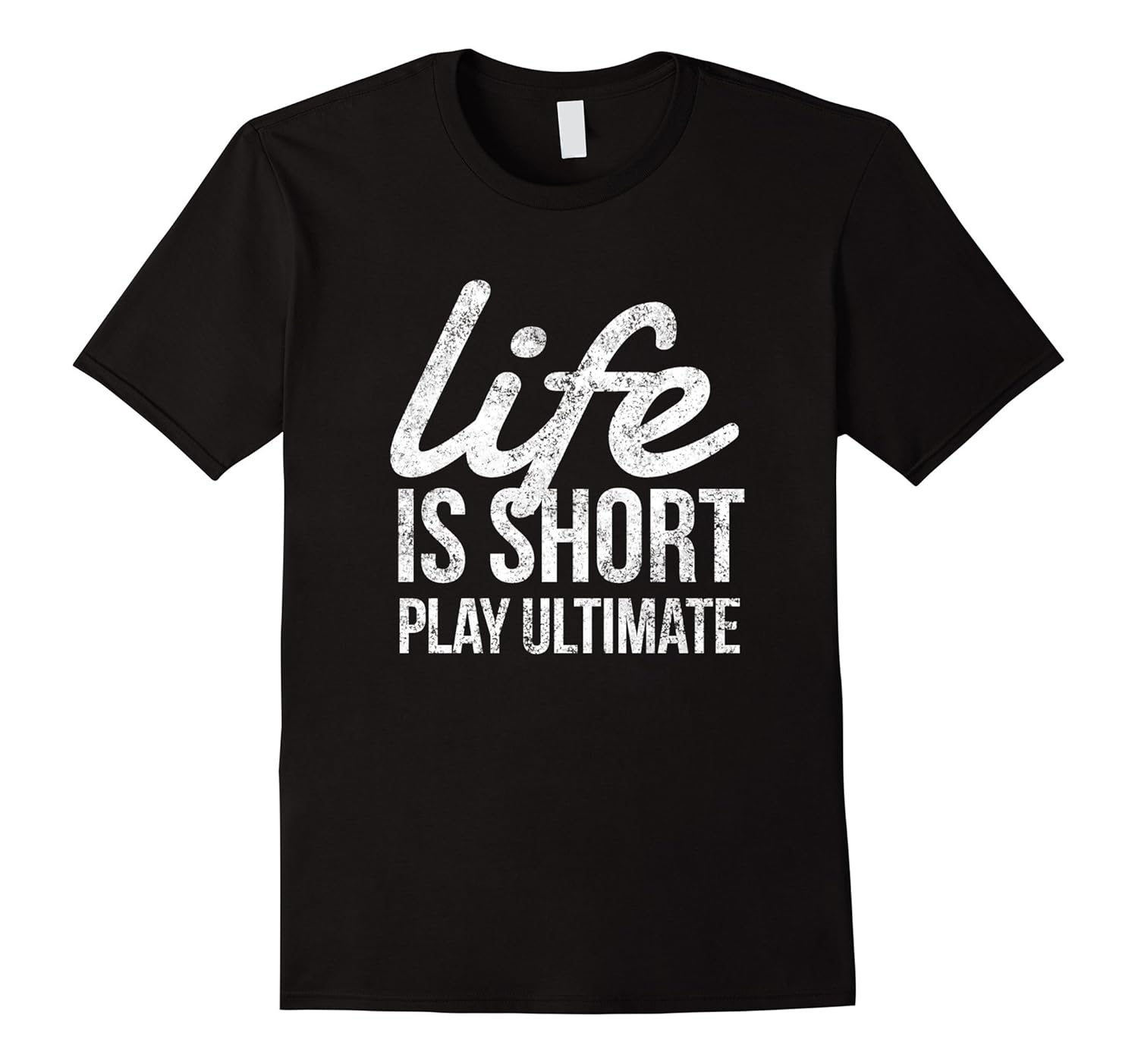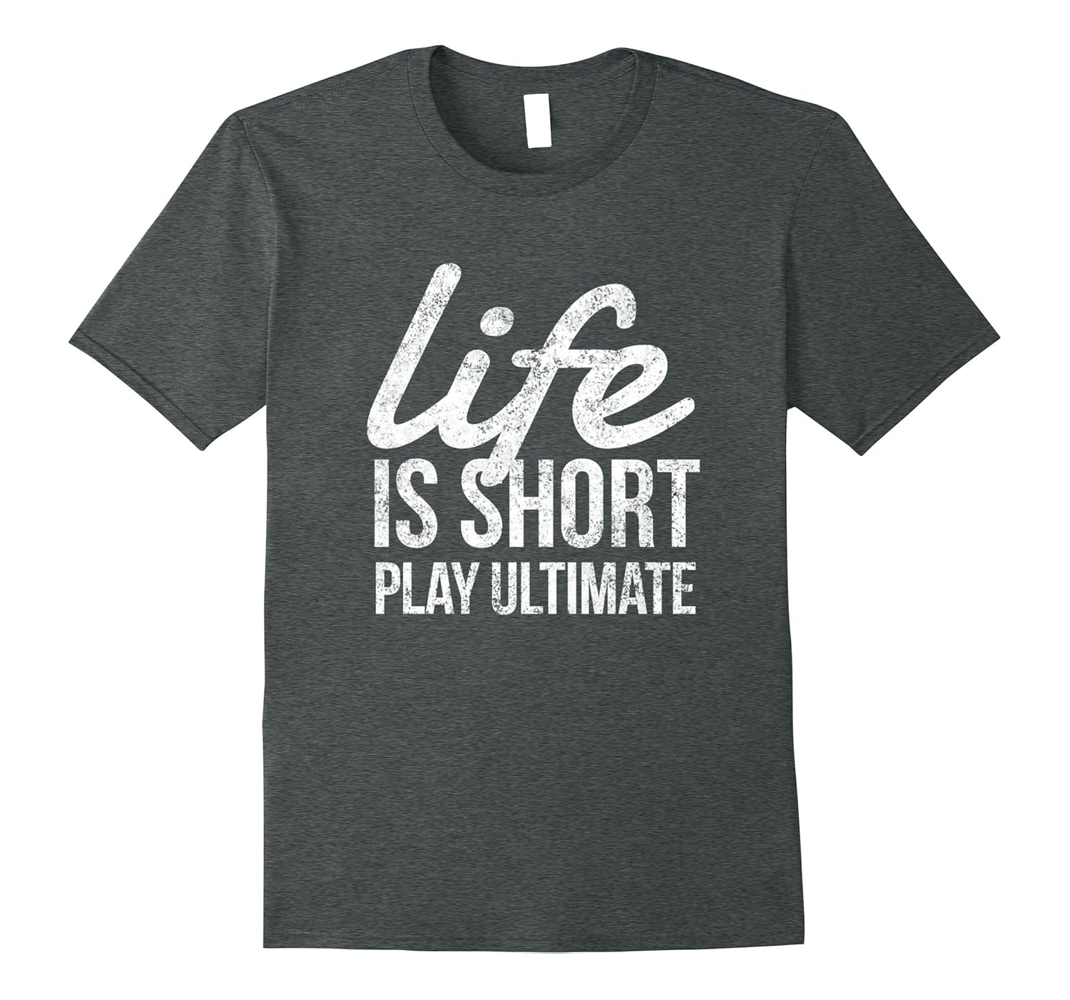 Solid colors: 100% Cotton; Heather Grey: 90% Cotton, 10% Polyester; All Other Heathers: 65% Cotton, 35% Polyester, Imported, Machine wash cold with like colors, dry low heat, Life Is Short Play Ultimate Frisbee. Let the disc fly, diving catches and grass stains, Motivational T-Shirt For Ultimate Players, Lightweight, Classic fit, Double-needle sleeve and bottom hem
