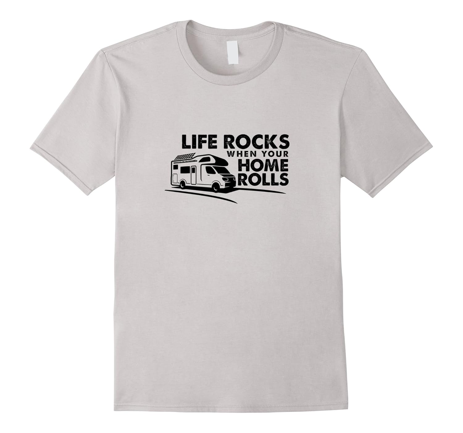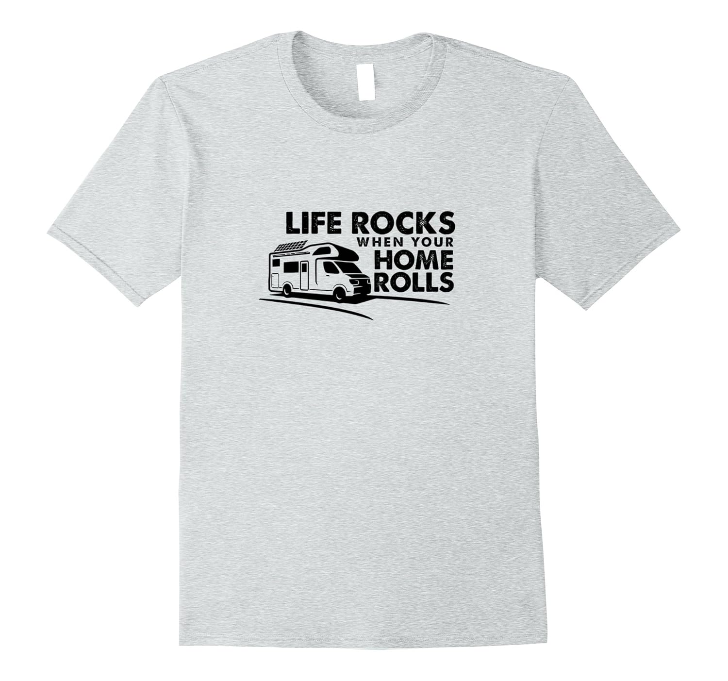 Solid colors: 100% Cotton; Heather Grey: 90% Cotton, 10% Polyester; All Other Heathers: 65% Cotton, 35% Polyester, Imported, Machine wash cold with like colors, dry low heat, Hit the road with this cool Life Rocks When Your Home Rolls RV Camping Shirt. This is the perfect gift idea for happy campers who prefer the RV lifestyle. A great tshirt to wear on your next road trip and; outdoor adventure. Buy this classic casual tee now!, Home is where your park your mobile tent this summer. A statement shirt that fits retired people, those who love to get in the motor home and; travel across the country. Perfect for a traveler, explorer, driver, pilot, co-pilot and; hippie camper in your life. Lightweight, Classic fit, Double-needle sleeve and bottom hem