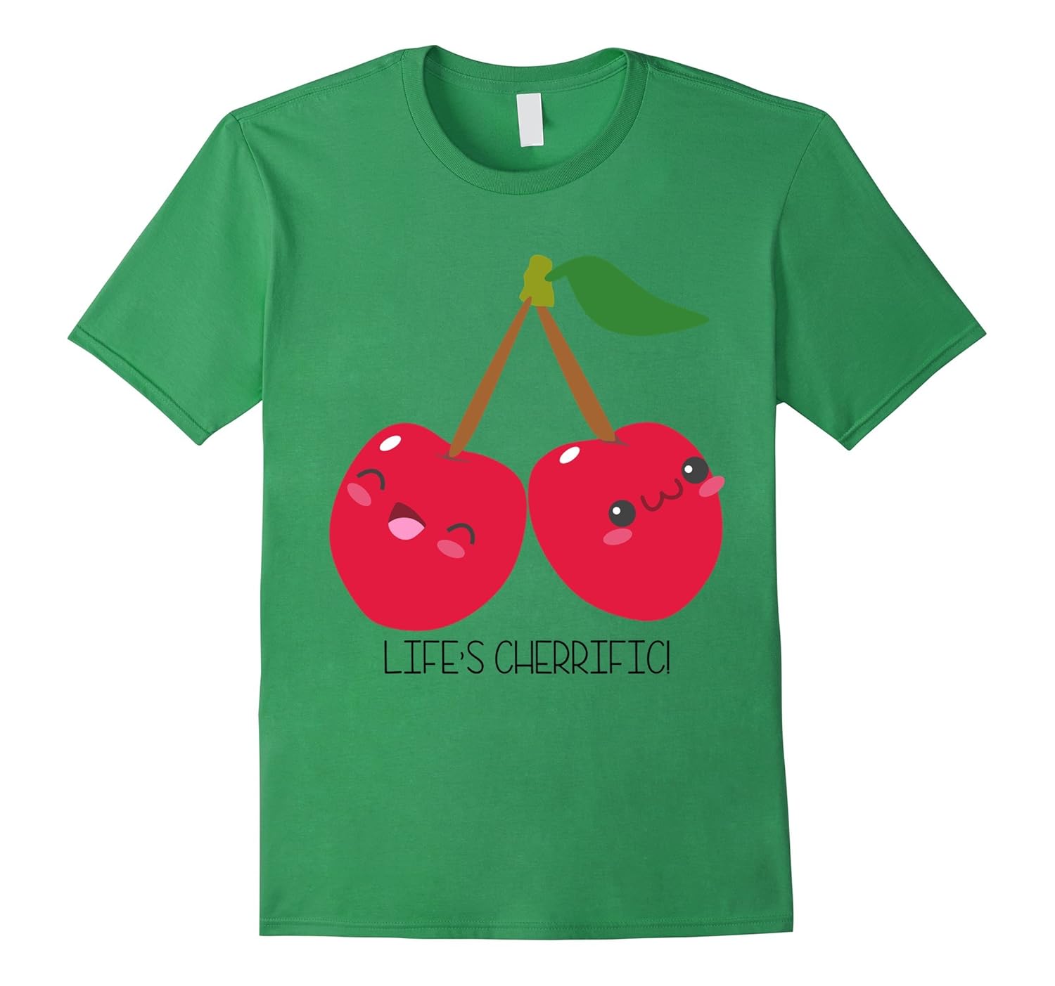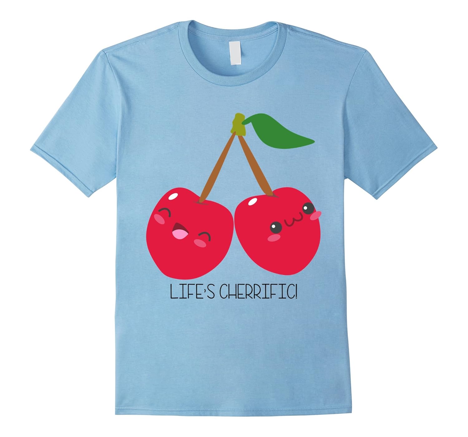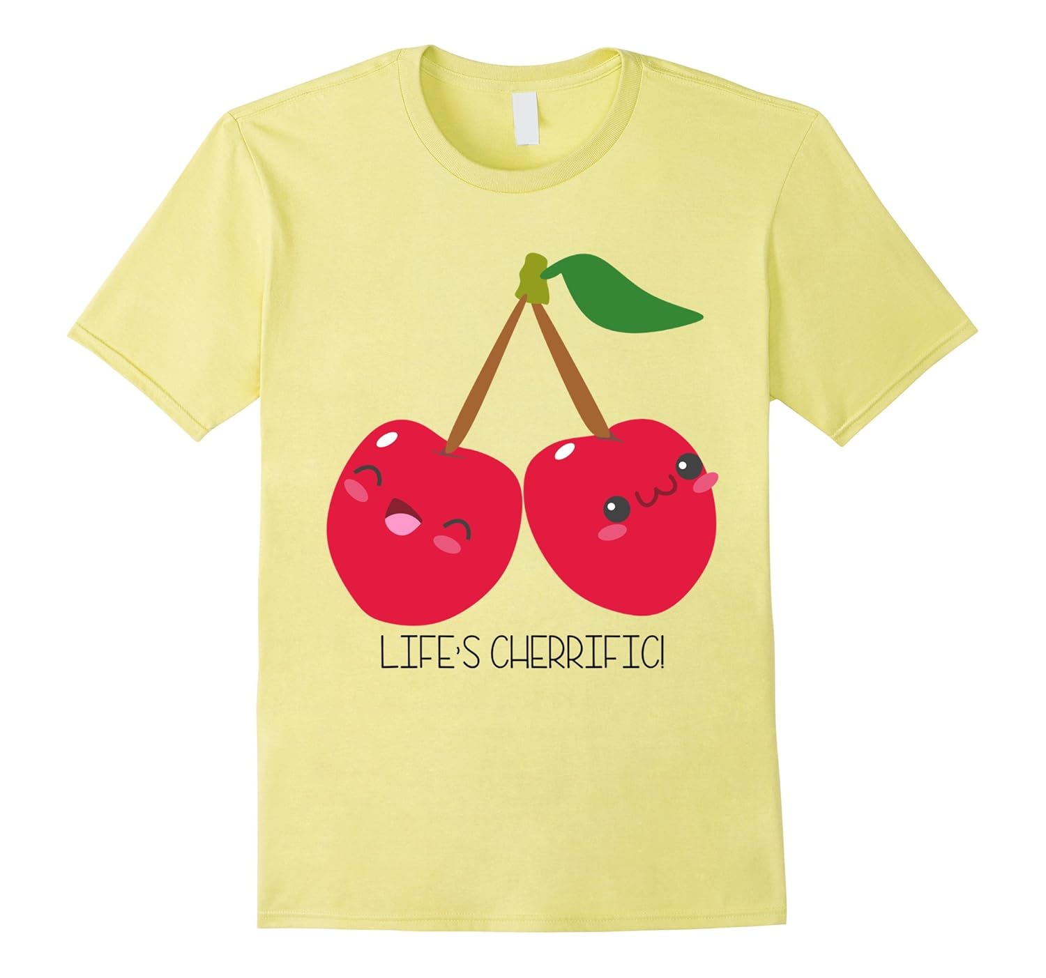 Solid colors: 100% Cotton; Heather Grey: 90% Cotton, 10% Polyester; All Other Heathers: 65% Cotton, 35% Polyester, Imported, Machine wash cold with like colors, dry low heat, Fun tee for those who think “Life”s Cherrific!”, Great shirt for anyone who likes kawaii design, count cherries as their favorite food, vegetarians and vegans, Lightweight, Classic fit, Double-needle sleeve and bottom hem
