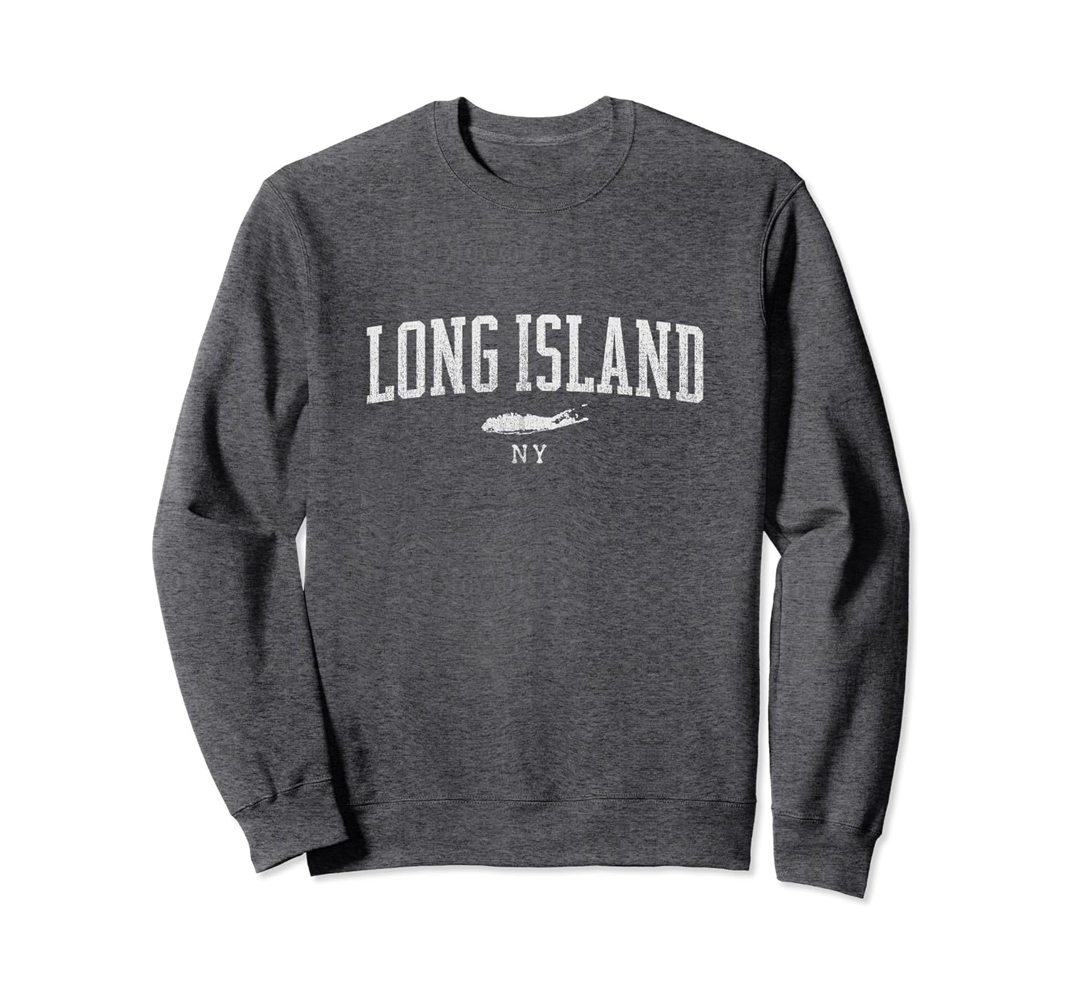 Solid colors: 80% Cotton, 20% Polyester; Heather Grey: 78% Cotton, 22% Poly; Dark Heather: 50% Cotton, 50% Polyester; Imported; Machine wash cold with like colors, dry low heat; Celebrate Long Island New York with this retro look sports style crewneck sweater. A stylish pullover for general wear or sporting occasions like football, baseball, basketball hockey and lacrosse. University style. A nice present for a proud native; A vintage look athletic style. Whether youre from the boroughs of NYC, Brooklyn, Queens, Nassau or Suffolk county. A Perfect gift sweatshirt for Dad, Mom, a boyfriend or girlfriend. For fans of athletics and casual wear. Enjoy with a BEC and half and half; 8.5 oz, Classic fit, Twill-taped neck