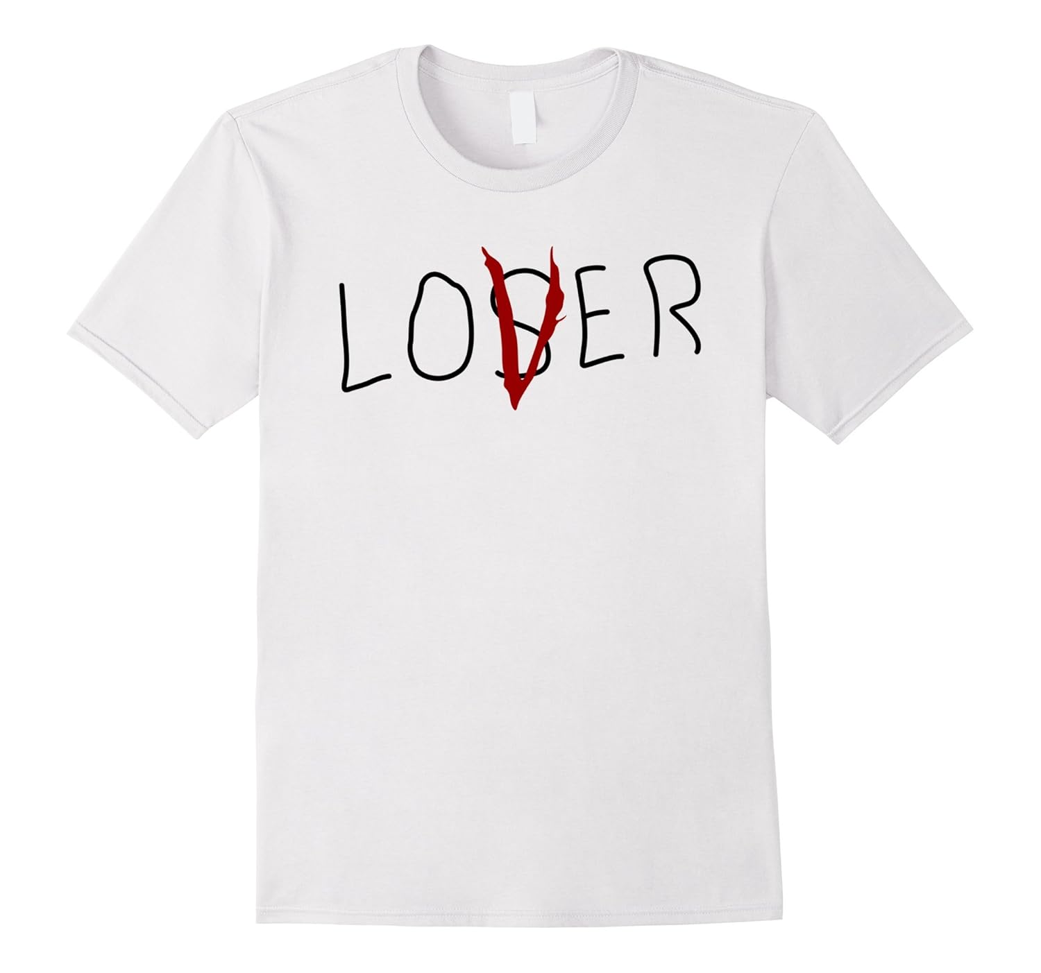 Solid colors: 100% Cotton; Heather Grey: 90% Cotton, 10% Polyester; All Other Heathers: 65% Cotton, 35% Polyester, Imported, Machine wash cold with like colors, dry low heat, Makes an excellent gift for anyone who loves horror movies. IT will be a great Tee Shirt to wear this Halloween!, Best Present for anyone who isn”t a loser but is definitely a lover. Lightweight, Classic fit, Double-needle sleeve and bottom hem