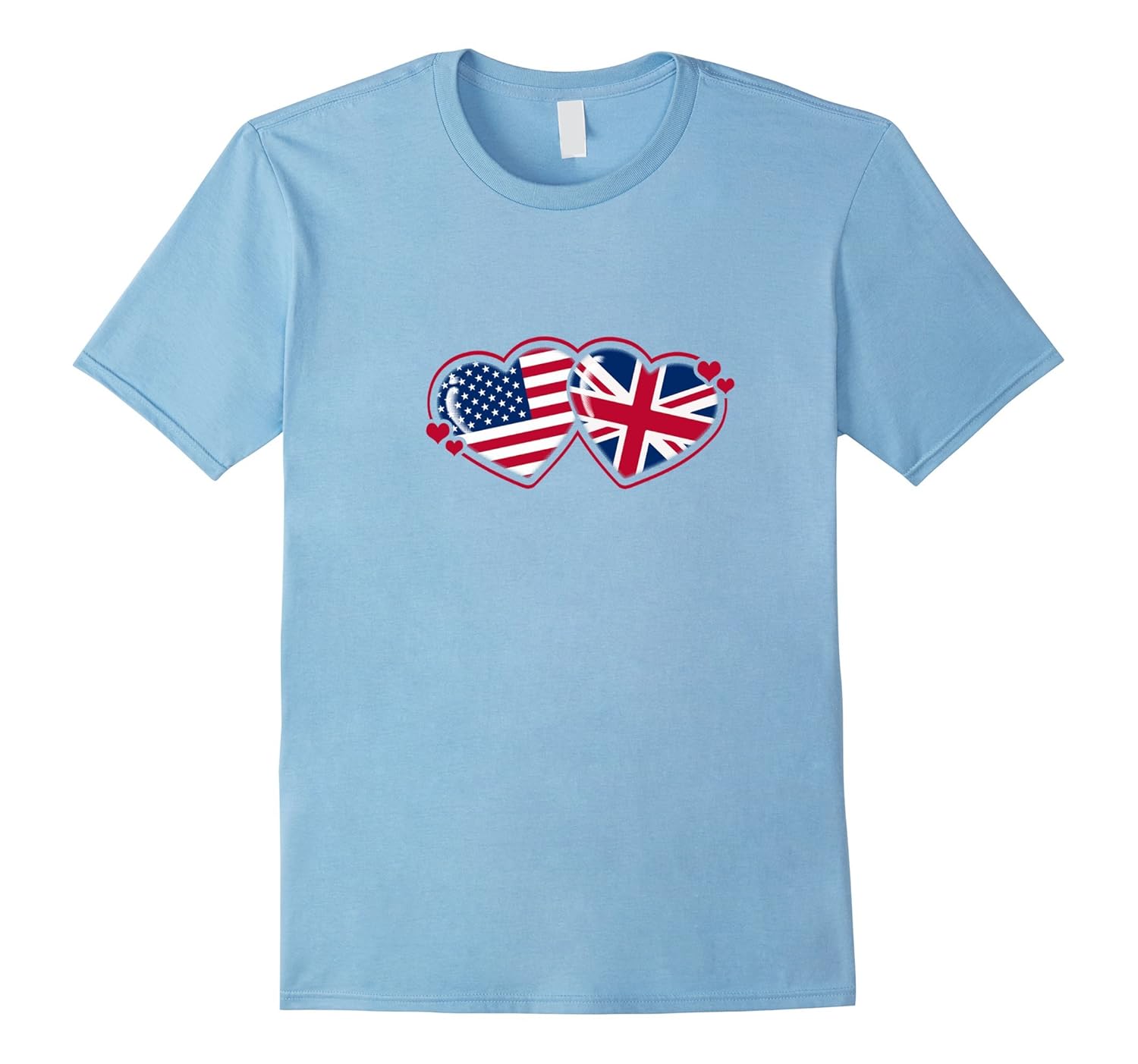 Solid colors: 100% Cotton; Heather Grey: 90% Cotton, 10% Polyester; All Other Heathers: 50% Cotton, 50% Polyester; Imported; Machine wash cold with like colors, dry low heat; Do you love Britain and the USA and have joined your families and your hearts together? Then this is the perfect T-shirt for you or as a gift for someone who was born in one country but now lives in another. The flags from USA and UK are linked together in a heart shape to show the love in your heart for both countries, new and old. It would be a lovely surprise Valentine gift for either male or female recipients. Also great for a birthday present or Mother or Fathers day gift.; Union Jack and Stars and stripes – what could be better for an ex-pat from one of the countries that have been linked together through love, marriage or friendship. Anglophiles would enjoy this Tee too. Great gift for someone who has moved to UK or to USA. Available in men, women, youth, boys, girls and teenager sizes in white, black, asphalt, baby blue and navy colors.Perfect for any patriotic event, running T, casual wear, family get together or reunions.; Lightweight, Classic fit, Double-needle sleeve and bottom hem