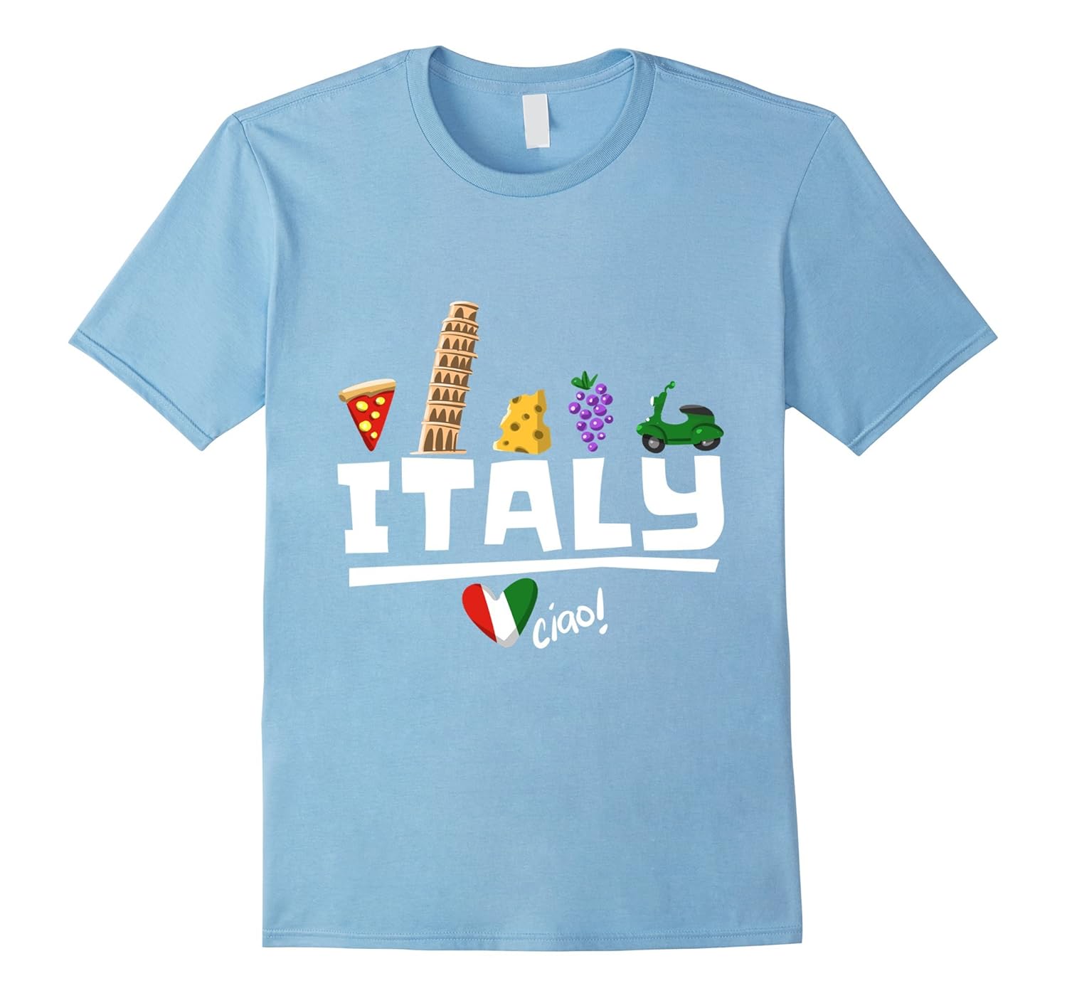 Solid colors: 100% Cotton; Heather Grey: 90% Cotton, 10% Polyester; All Other Heathers: 65% Cotton, 35% Polyester; Imported; Machine wash cold with like colors, dry low heat; The Italian elements and stuff from Italy design is a perfect for anyone from Italy or anyone going to Italy. Awesome tourist, vacation and holiday tee shirt for those that love the history of Sicily. Feel like a king or a queen with this amazing graphic Italian tee shirt! Say Ciao in the famous Italian greeting language!; Beautiful and original design. Novelty Italia gift tee shirt for your mom, dad, girlfriend, boyfriend, sister, brother, husband, wife, daughter, son or Italian friend! Love Italy and everything about Italy and wear yours now. Great if you are going or have gone to Milan Rome Naples Turin Florence Palermo Genoa Venice Verona Bologna Rimini Vicenza Cagliari Lecce or even Pisa!; Lightweight, Classic fit, Double-needle sleeve and bottom hem